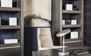 Libreria non componibile, personalizzabile a progetto, attraverso la scelta della finitura dell’acciaio e la scelta dell’essenza: dal nuovo legno Eucalipto Frisè Grigio alla Piuma di Noce fino al Palissandro. Design Rune Ricciardelli.