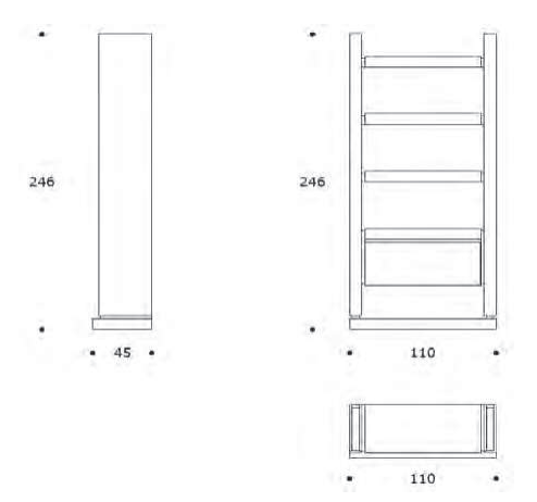 Dimensioni: larghezza 110 cm, altezza 246 cm, profondità 45 cm