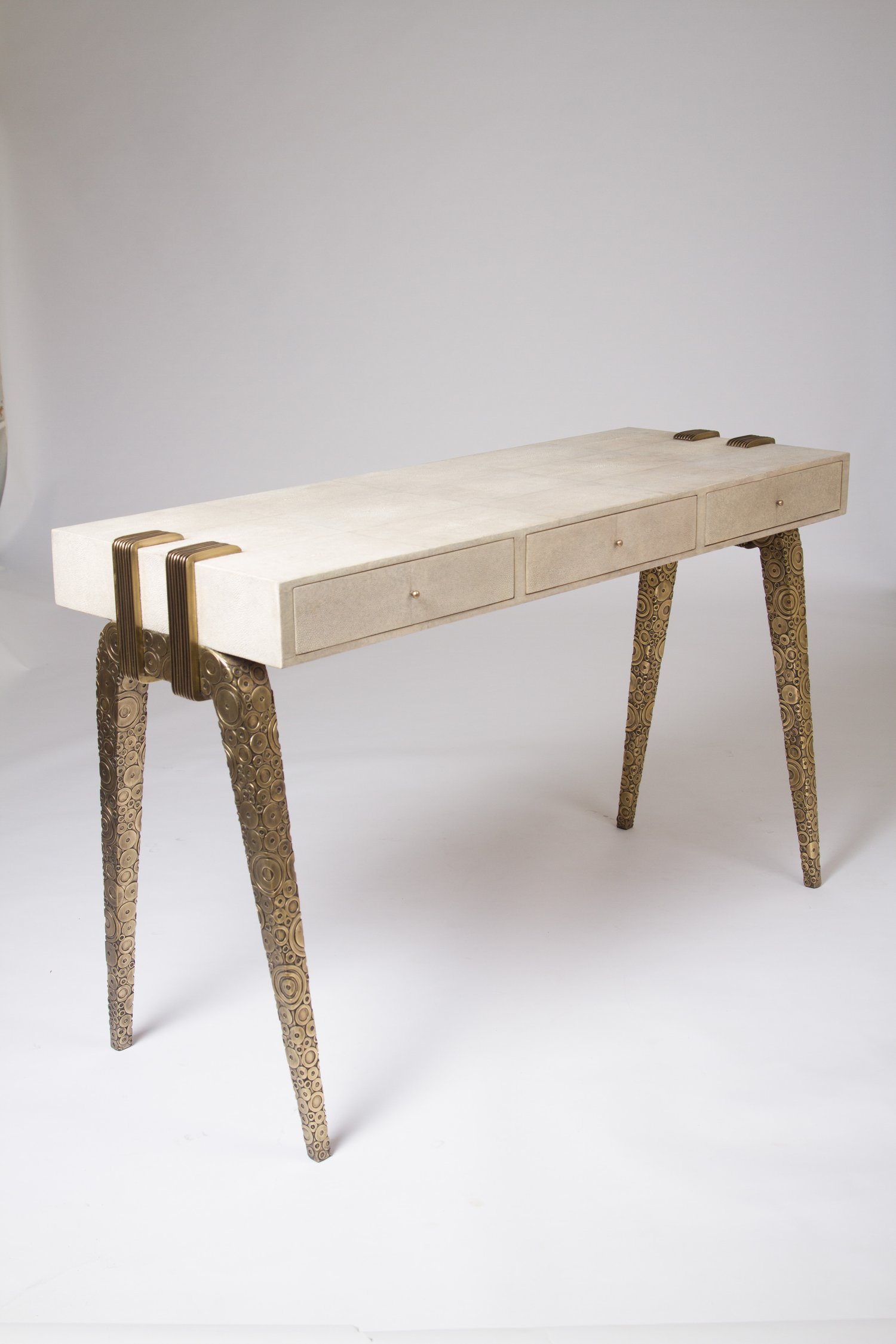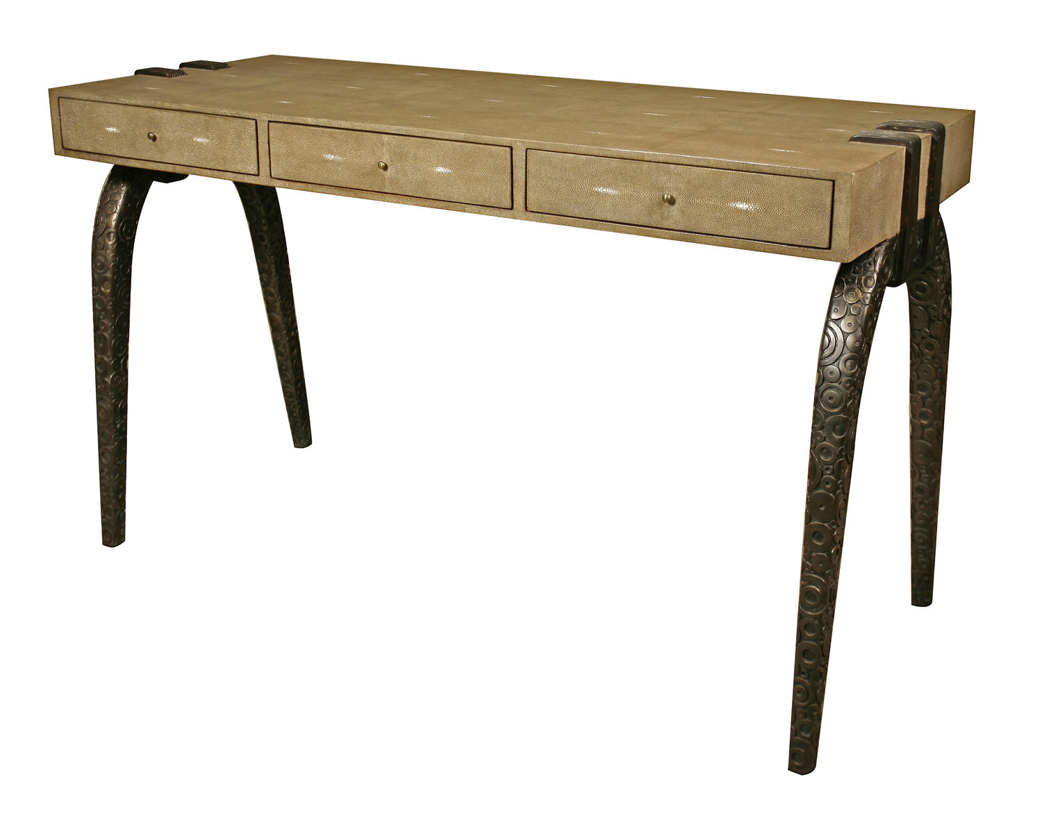 The Iconic Desk is the perfect piece for your room. An incredible “duo” between the Shagreen top and bronze-patina brass base. The inlay work on the legs makes this classic piece unique. Add a mirror and this desk becomes a vanity table.