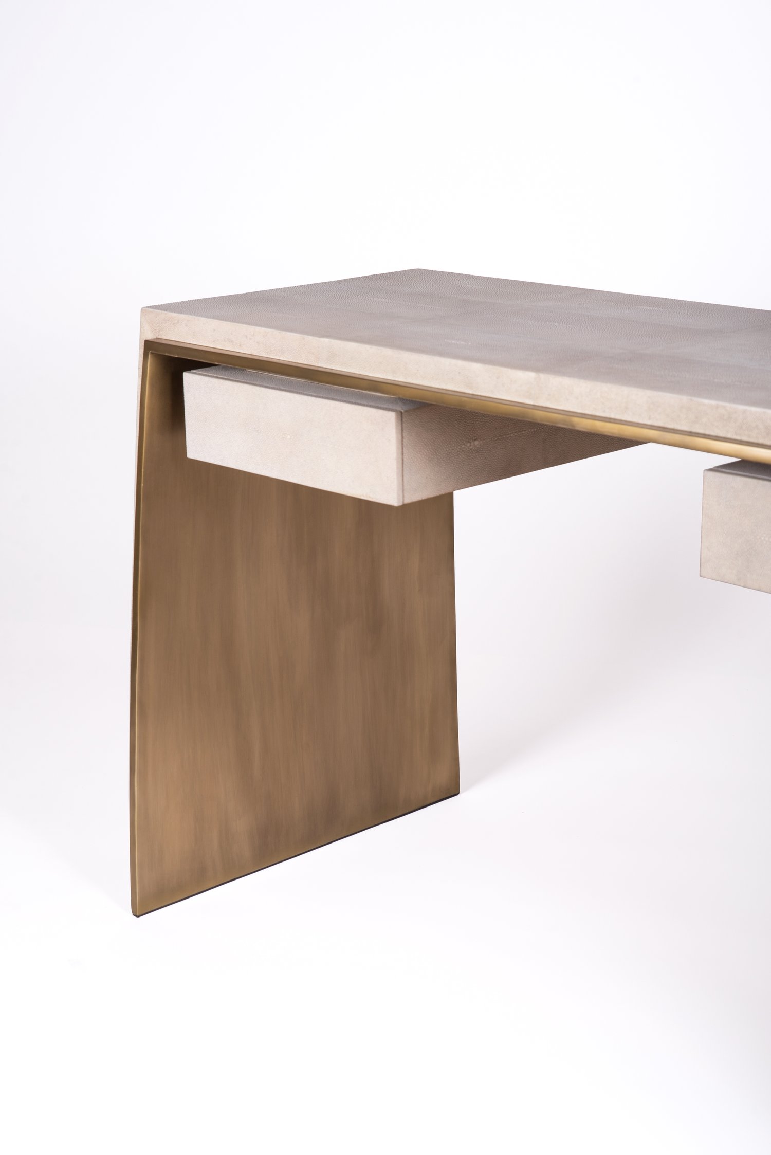 The St Honore Writing Desk is the ultimate luxury piece for an office. The shagreen overlay is asymmetric as shown on the stool.