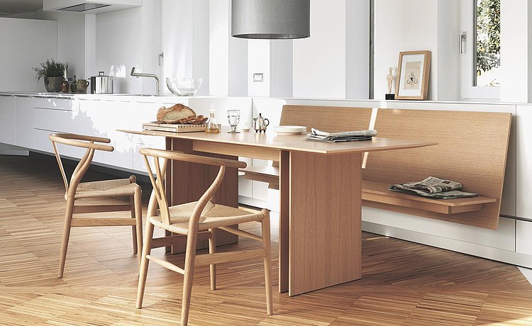As a complement to the c3 table, a bench is available in two versions: Floor-standing or floating. The latter is simply fixed to the multi-functional wall's carrier frame.