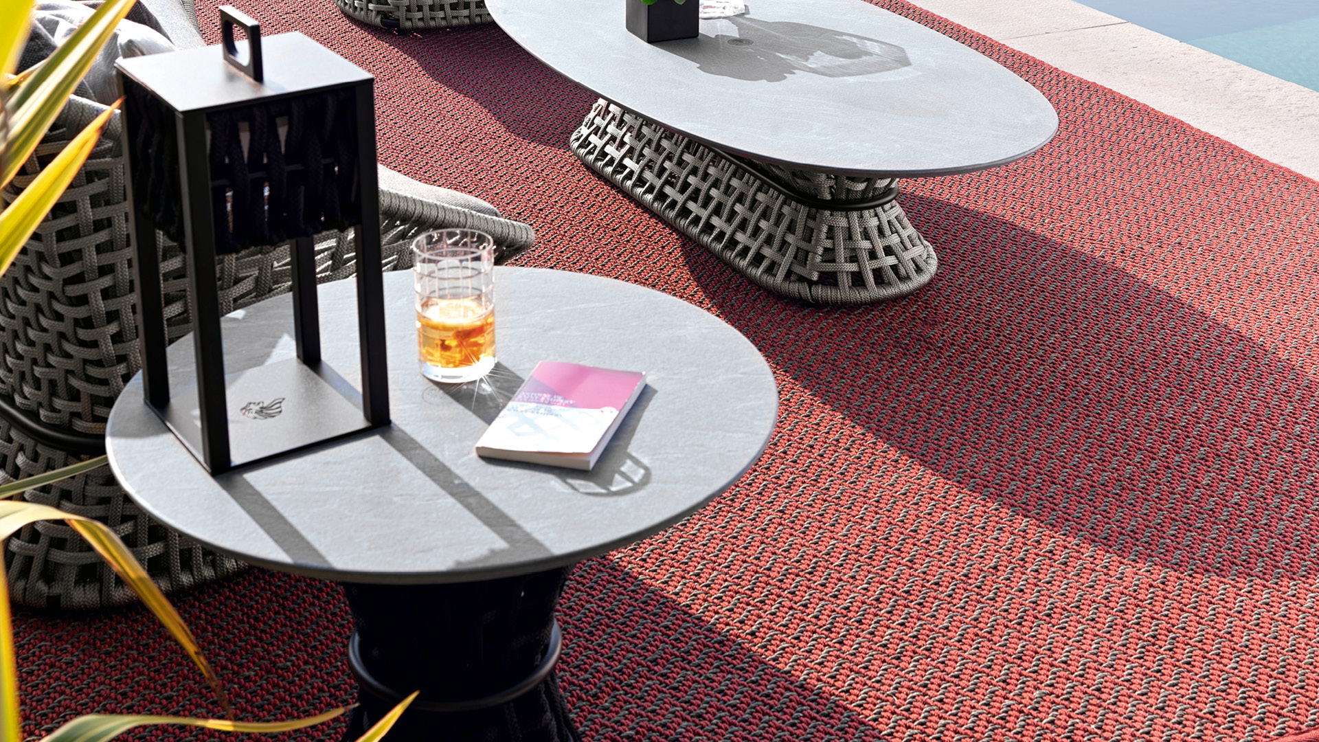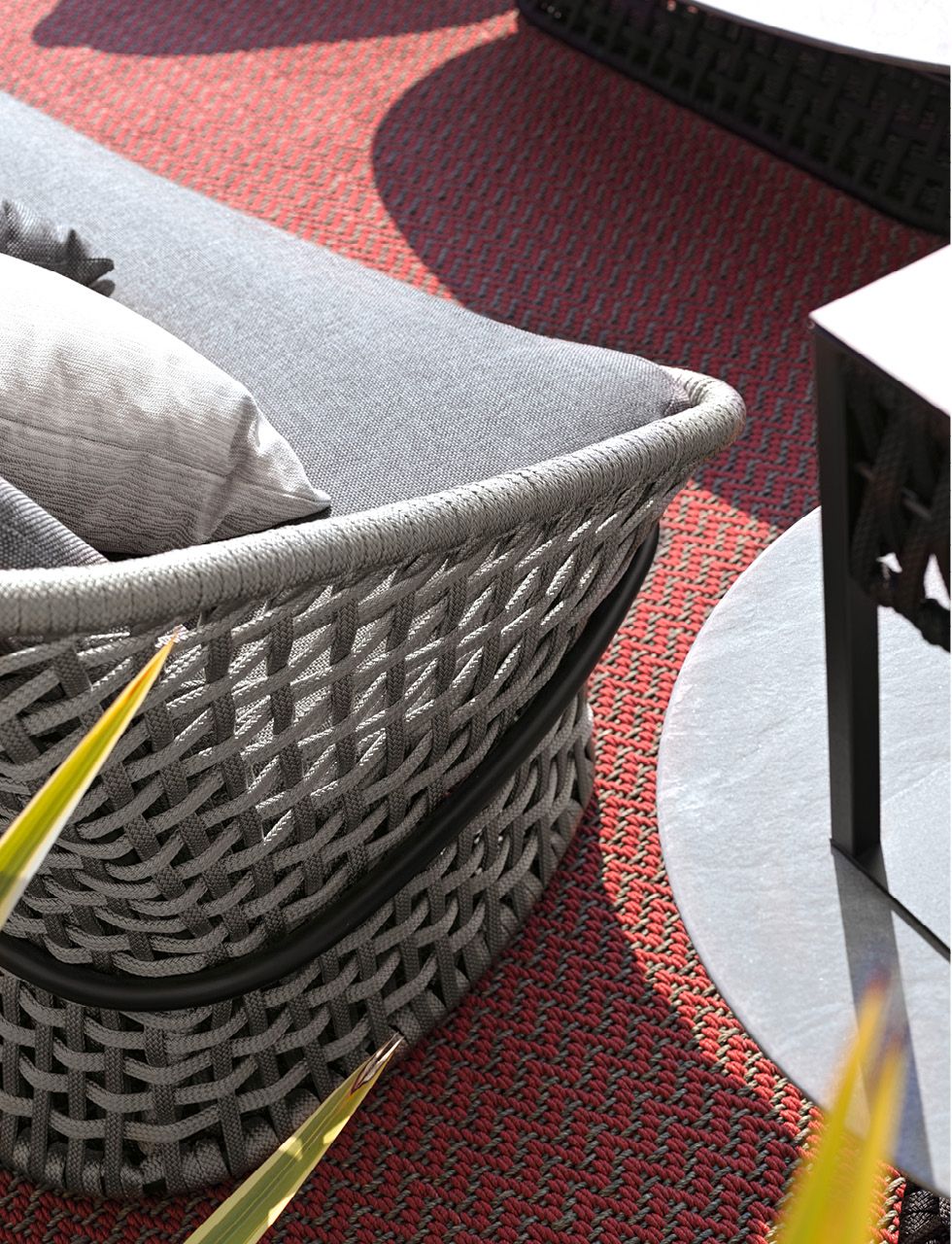 Outdoor carpet in 100% polypropylene embossed woven.