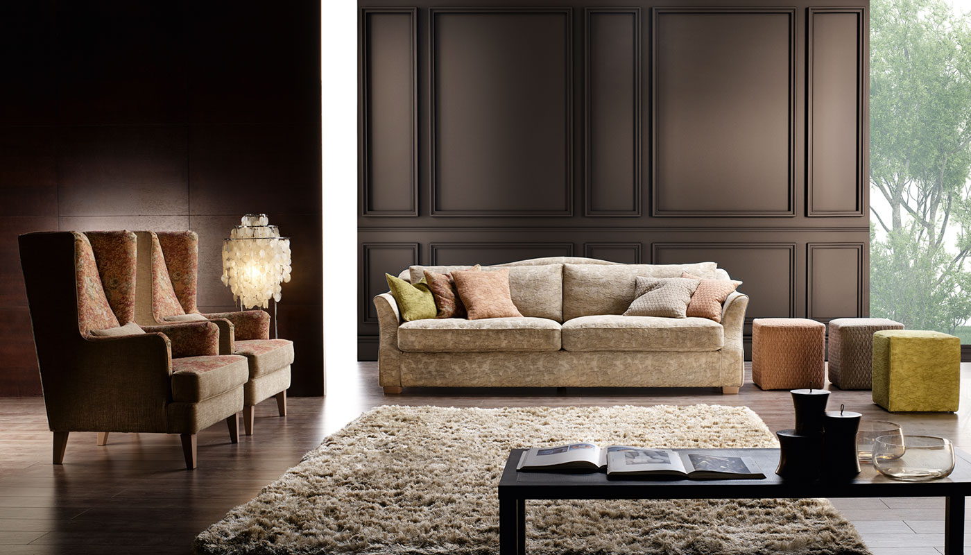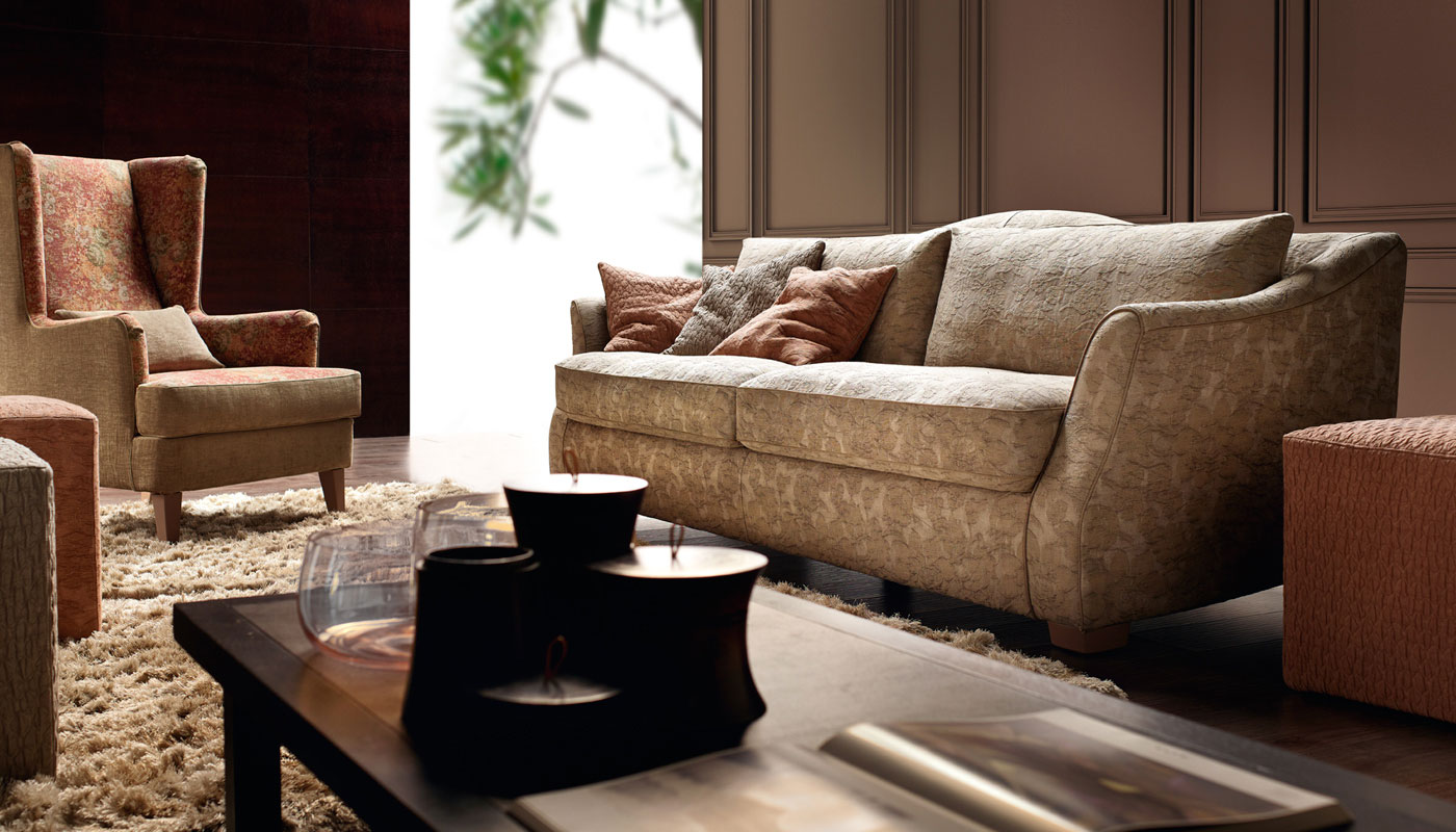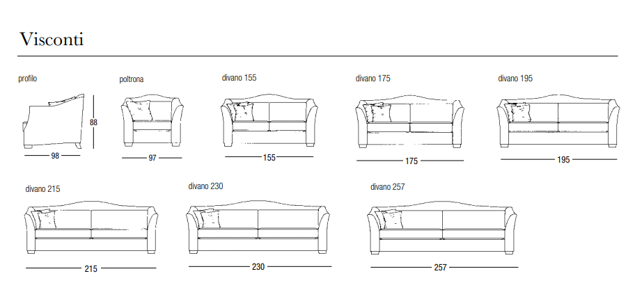 Visconti sofa is upper class, an educated refined revisitation of shapes taken from tradition. The curved lines of the arms blend into the outline of the backrest, creating a harmonious elegant object enhanced by the soft generous padding of the cushions. Visconti sofa is an out of the ordinary sofa. In a contemporary habitat, everything melts to disco- ver a new meaning, a new order, a new disposition. The Visconti sofa and the Vogue chairs give life to an ideal setting, where the wish for relax comes together with the desire of furnishing our own rooms with elegance, with a style that is all about harmony and beauty. Visconti sofa represents perfectly the classic sofas collection.