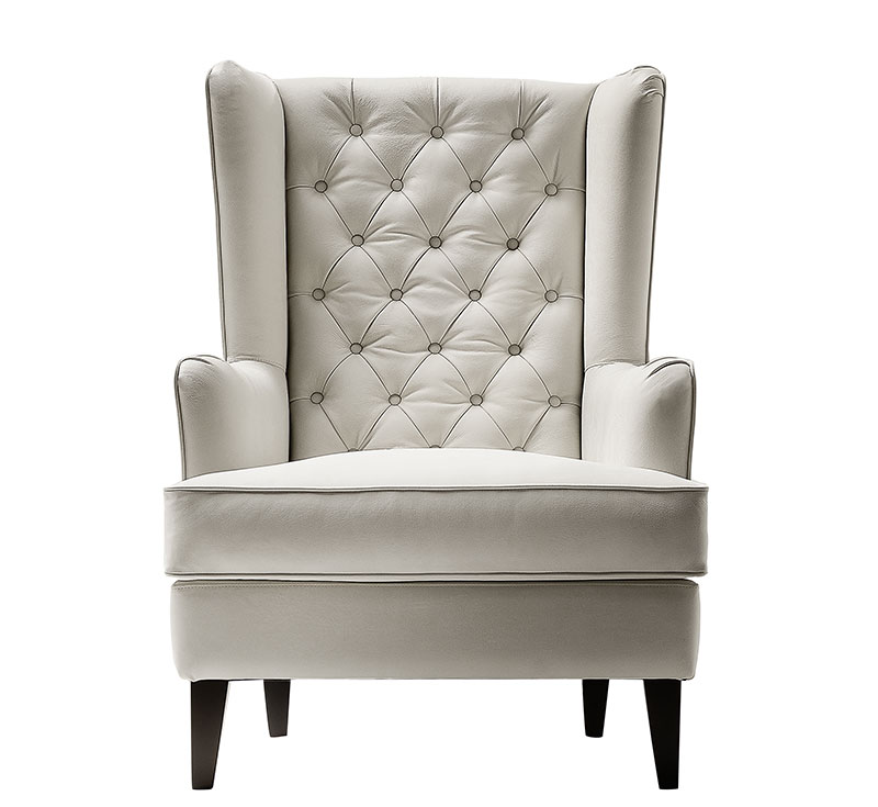 Un soffice schienale lavorato a mano con tecnica capitonnè avvolge la seduta con calda sensualità, donando all’oggetto un tocco glamour. Generose dimensioni e pulizia delle forme ne fanno un pezzo di grande impatto estetico.