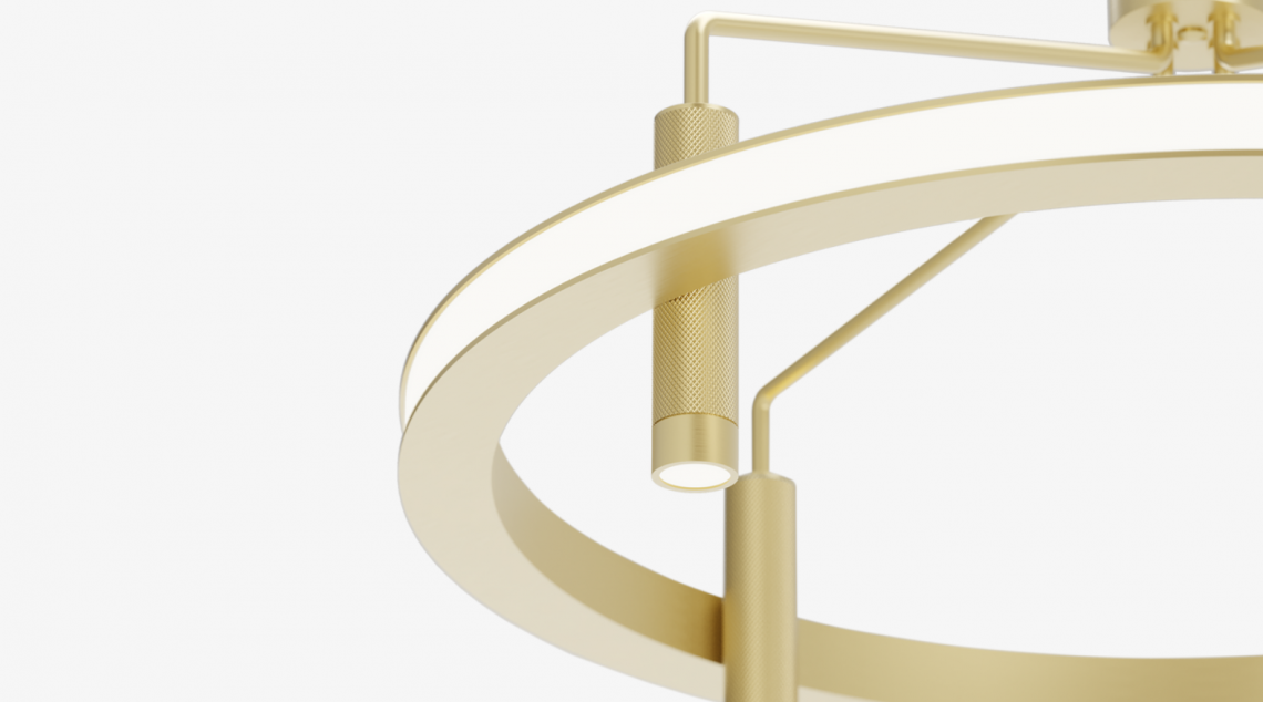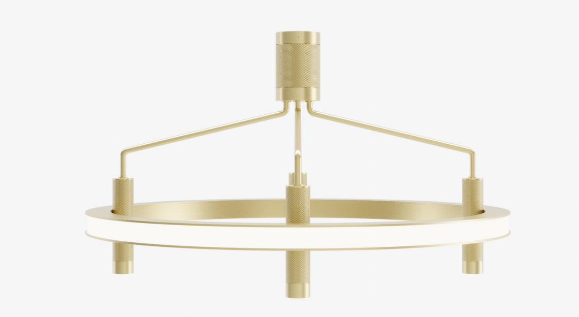 The refined TALLIN ceiling lamp takes a classic chandelier design back to its barest essentials for a highly minimalist take on a statement pendant light. Lustrous brass enlivens the lamp's purist form