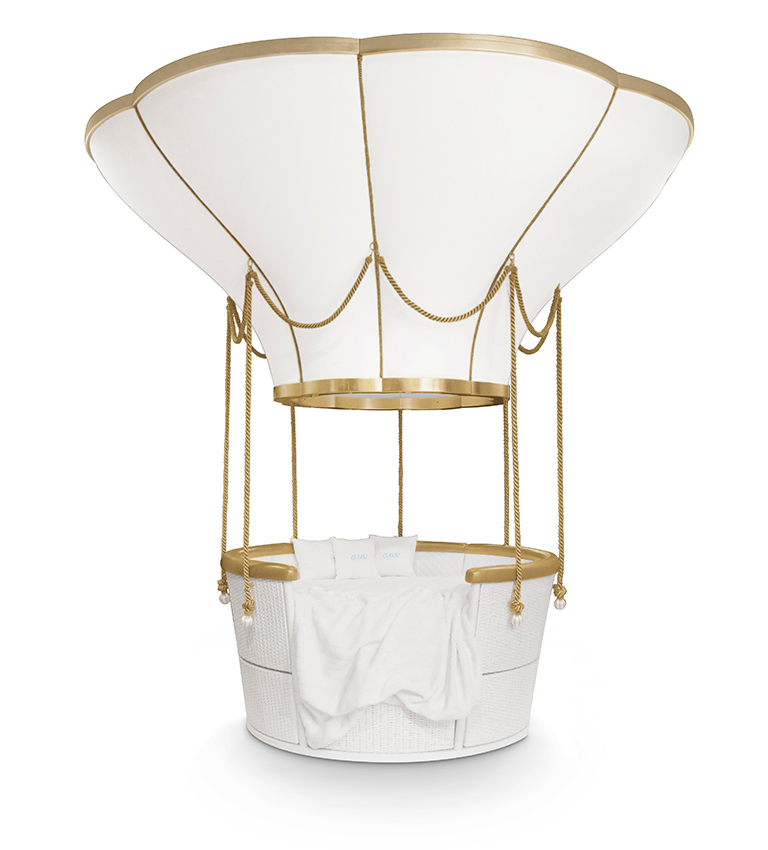 The top structure is fixated on the ceiling and it’s made of wood coated with synthetic leather, the passenger basket includes several storage compartments made by handmade wickerwork. The ropes are made in fiber silk and the exclusivity of the details is guaranteed by the appliance of gold leaf.