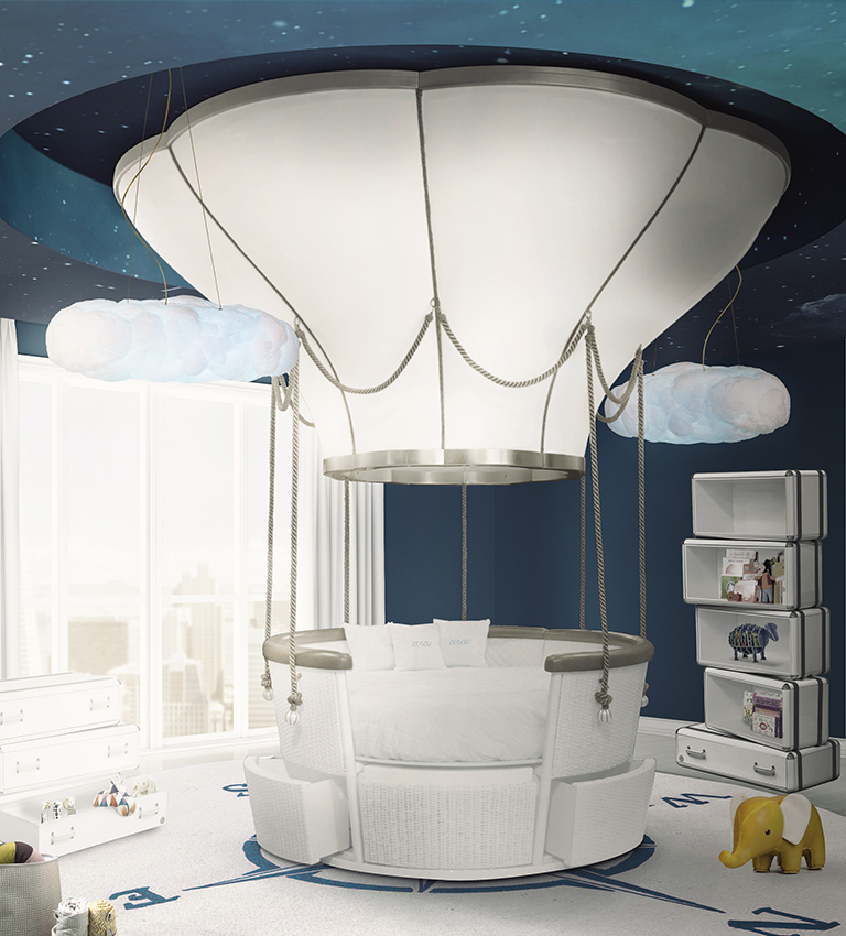 The bed can be customized to fit both boys and girls bedroom designs with a hot air balloon decor, and due to its unique design can be easily turned into a sofa.