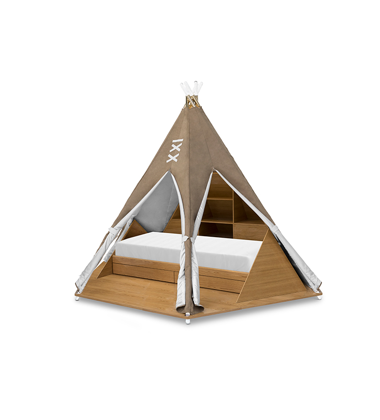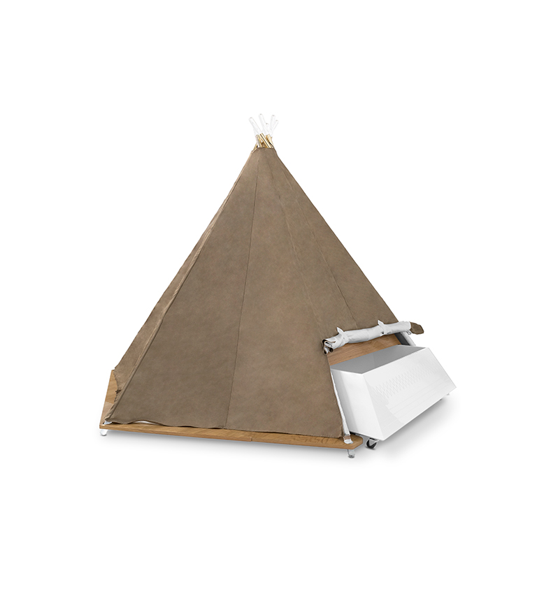 The Teepee Room has a RGB light and speakers and it can be controlled by a mobile app (or with remote control). That connects by bluetooth and you can choose the music you want to play in your smartphone. The app has also a sleep assistant and you can choose the color intensity of the light and lighting effects.