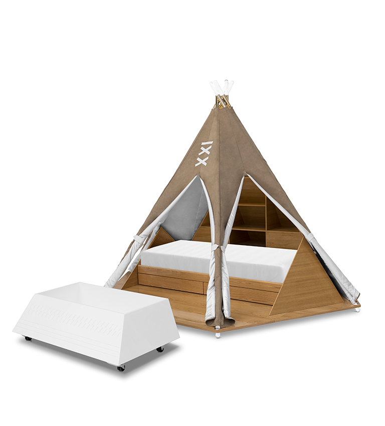 It is comfortable, cozy and playful, featuring interactive design elements such as a remote controlled light and sound system and a toy box that functions as a secret compartment.