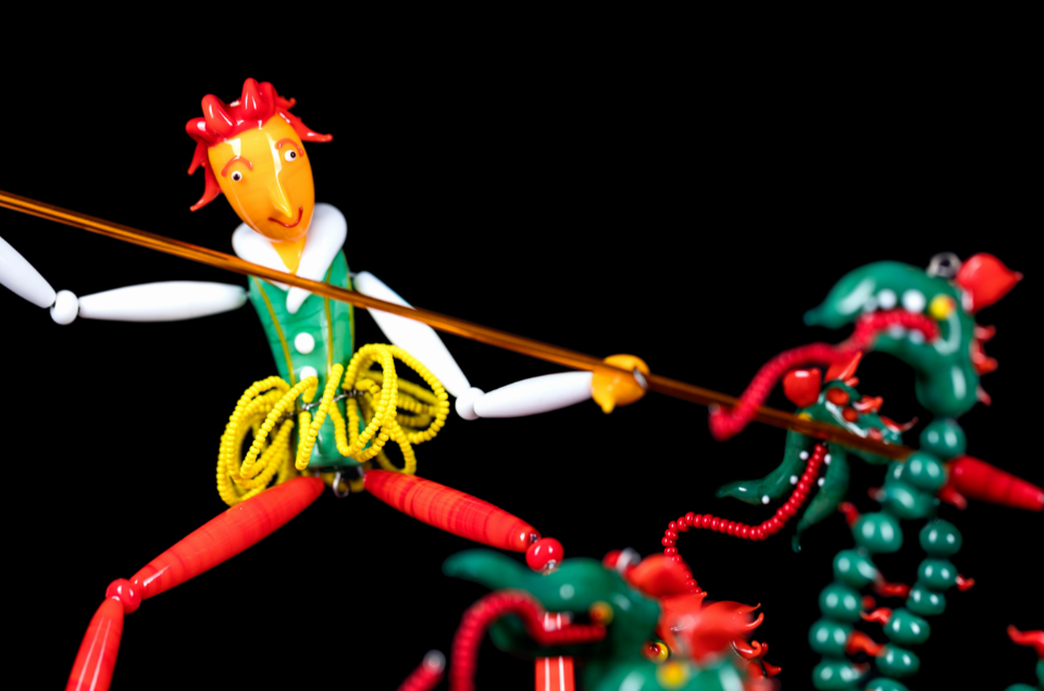 The seemingly fragile statuette of “Saint George and the Dragon“ represents not only tales of heroes and monsters, but all of history. Originally dating back to ca. 1925, the statue’s story is set after the First World War, when Europe was recuperating from the traumas of death and destruction. There was new hope, and the state of Czechoslovakia was born. The statue was resurrected in the 21st century by LASVIT.