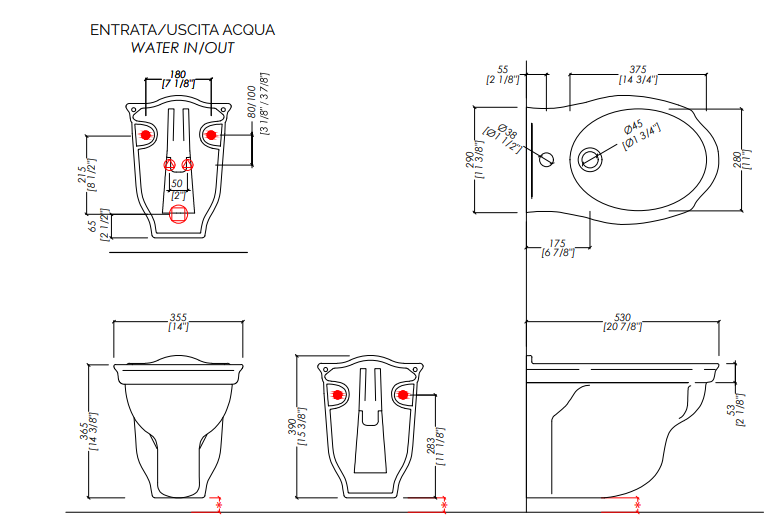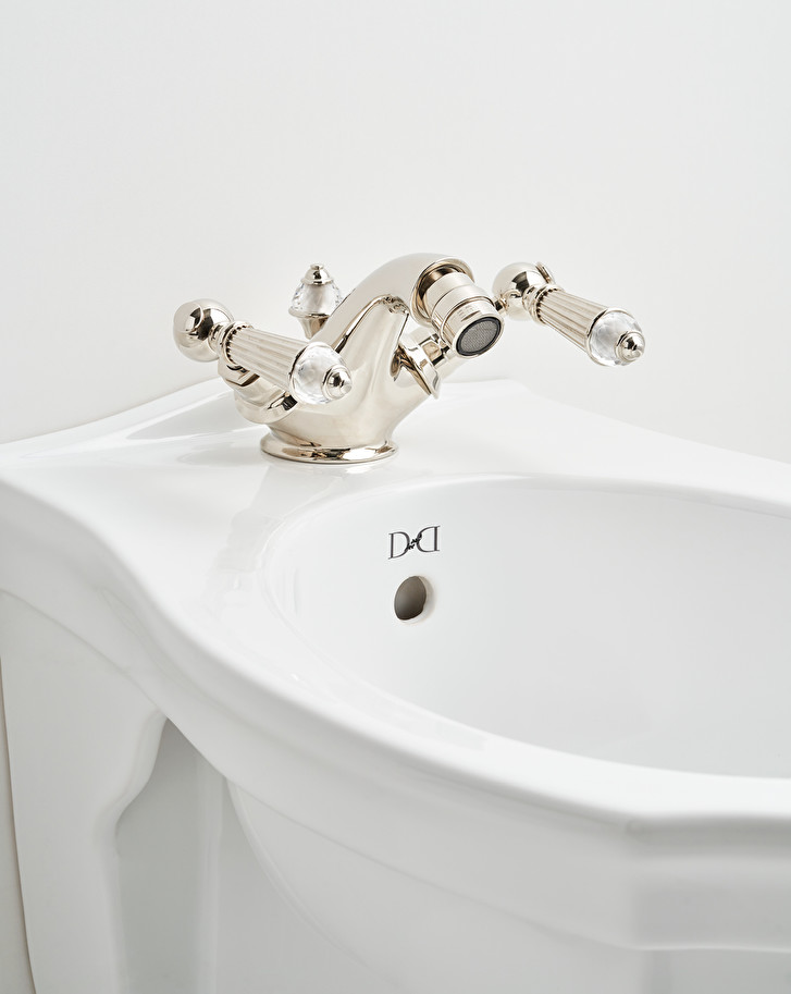 The quintessence of classicism for a wall-mounted bidet in fine white porcelain, inspired by the purest British style.