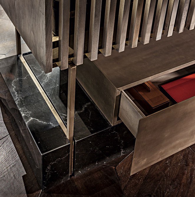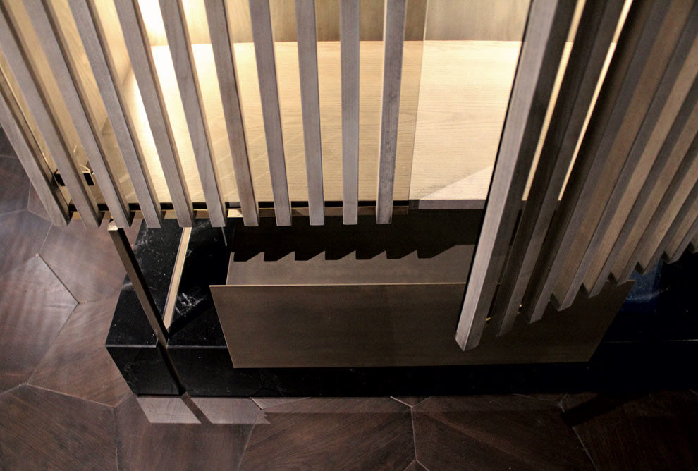 bronze glass doors and shelves,