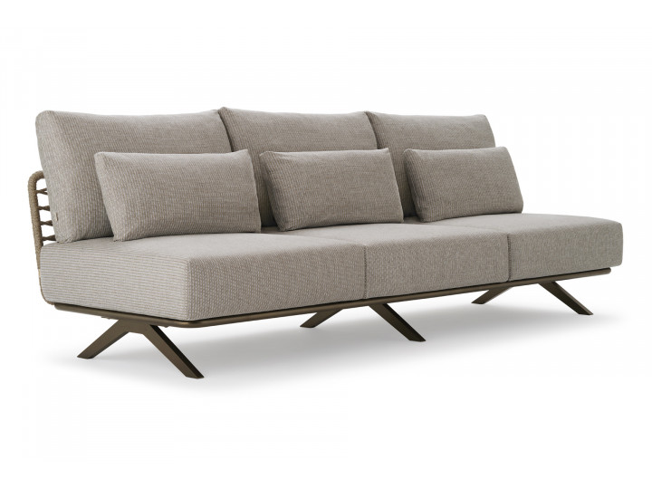 Elemento 3 posti in acciaio inox Aisi 304 e alluminio verniciato a polveri, intrecciato in Oval Trendyrope. Componente modulare della collezione Arman, un concept di design che consente di combinare i diversi elementi in modo armonioso e personale. La generosa e comoda seduta invita al relax, regalando una sensazione di comfort accogliente e conferendo un'eleganza contemporanea agli spazi circostanti. L'intera gamma è progettata sia per l'arredamento residenziale che per quello contract, sia per gli spazi outdoor che indoor.