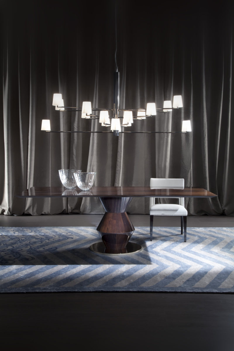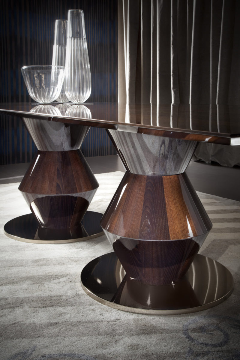 Model available in 5 different wood essences. It comes in 2 standard sizes and can be customized up to 300x120 cm