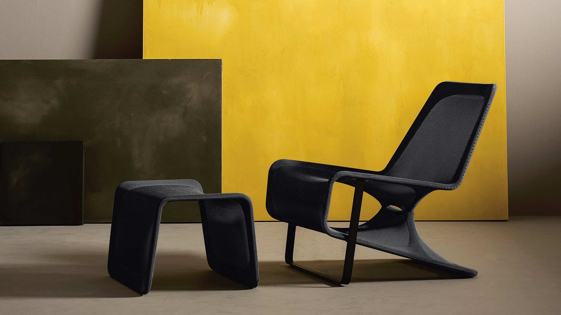 Aria is a long chair with an ethereal and delicate, almost immaterial silhouette. It is composed of an extremely resistant and elastic mesh that wraps the metal frame in tubular steel like a sock, offering a wide seat without the traditional padding.Very precise lines make Aria a long chair with a discreet presence, suitable for both the living room and the veranda.At the same time it offers excellent comfort thanks to the ergonomic shape of the armchair and its volume, created by the tension obtained by the two buttons on the seat.