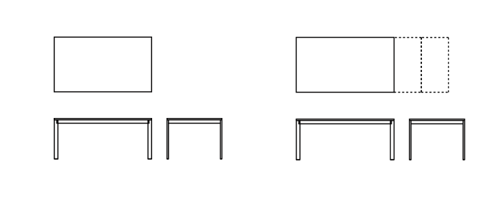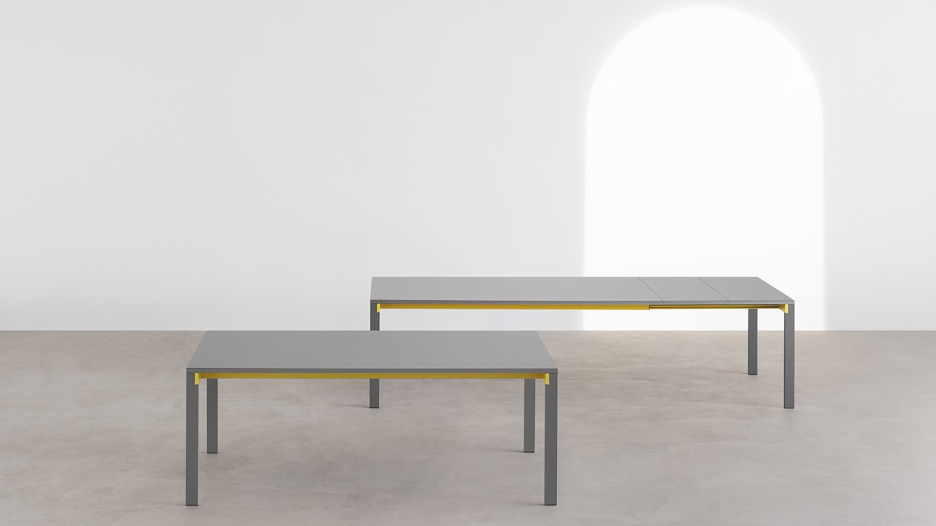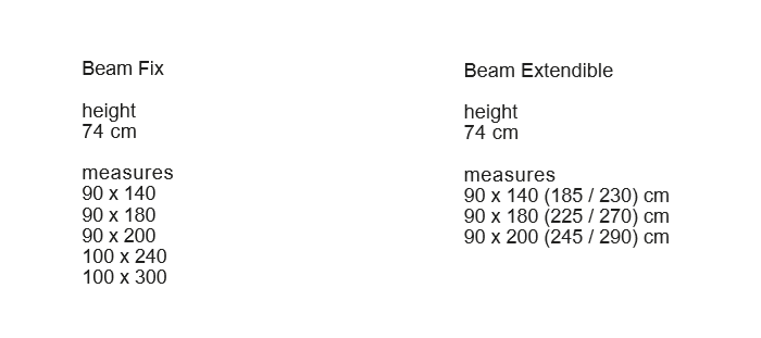 Designing emphasizes shapes, materials and technology. Beam, in the fix and extendible versions, enhances the symbolic value of table showing itself, thanks to its lightness, almost suspended, held on the ground onlyby the geometric legs.This table seems to have its original function. The distant legs almost forgotten, makes the table float above the ground like a magic carpet.