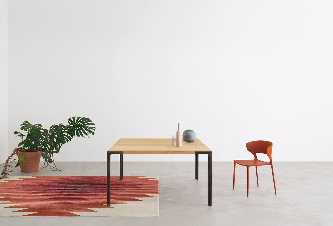 With the bold look of its sawn-effect oak top, the Fan table displays a unique, precise style concept. The legs, too, convey an exclusive industrial language to enhance the uniqueness of this design.A clear concept gives life to a rigorous yet expressive collection.“The leg consists of a simple plate that a fold and a counterfold make structural, becoming its characteristic detail, taking on a very interesting industrial language”.