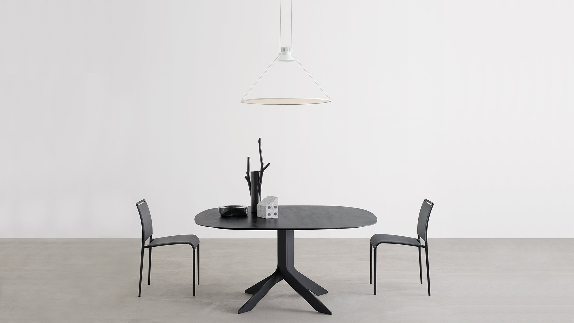 The Iblea table combines a dynamic design with technological elegance. The circular perfection of its top blends harmoniously with the geometric stability of its base. Design can also be a contradiction: for example, a dynamic form, like a base that looks like a vortex, which meets the static dimension of a monolithic marble top. The table Iblea takes shape from here; maximum expression of such contradiction.