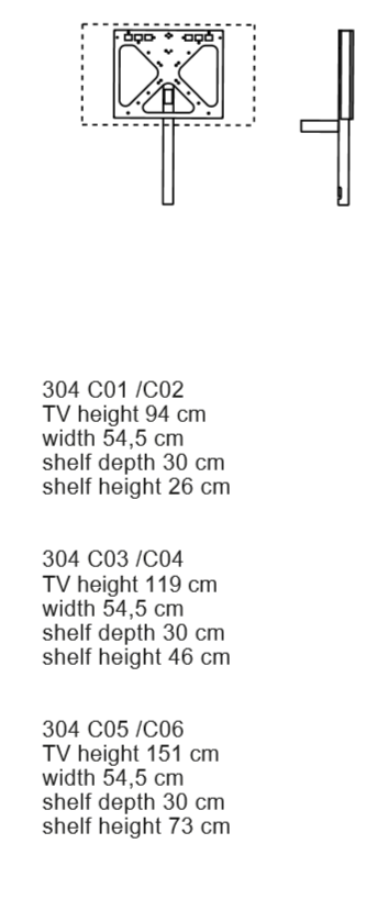 A multi-version support for new-generation TV sets. Simplicity and lightness are the qualities of a technically elegant accessory that allows the moving image to play a leading role in the residential setting. Ideal for domestic use, yet also suitable for public spaces or workplaces.