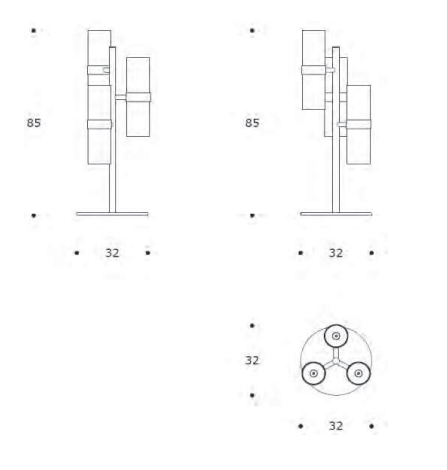 Dimensioni: larghezza 33 cm, altezza 85 cm, profondità 33 cm.
