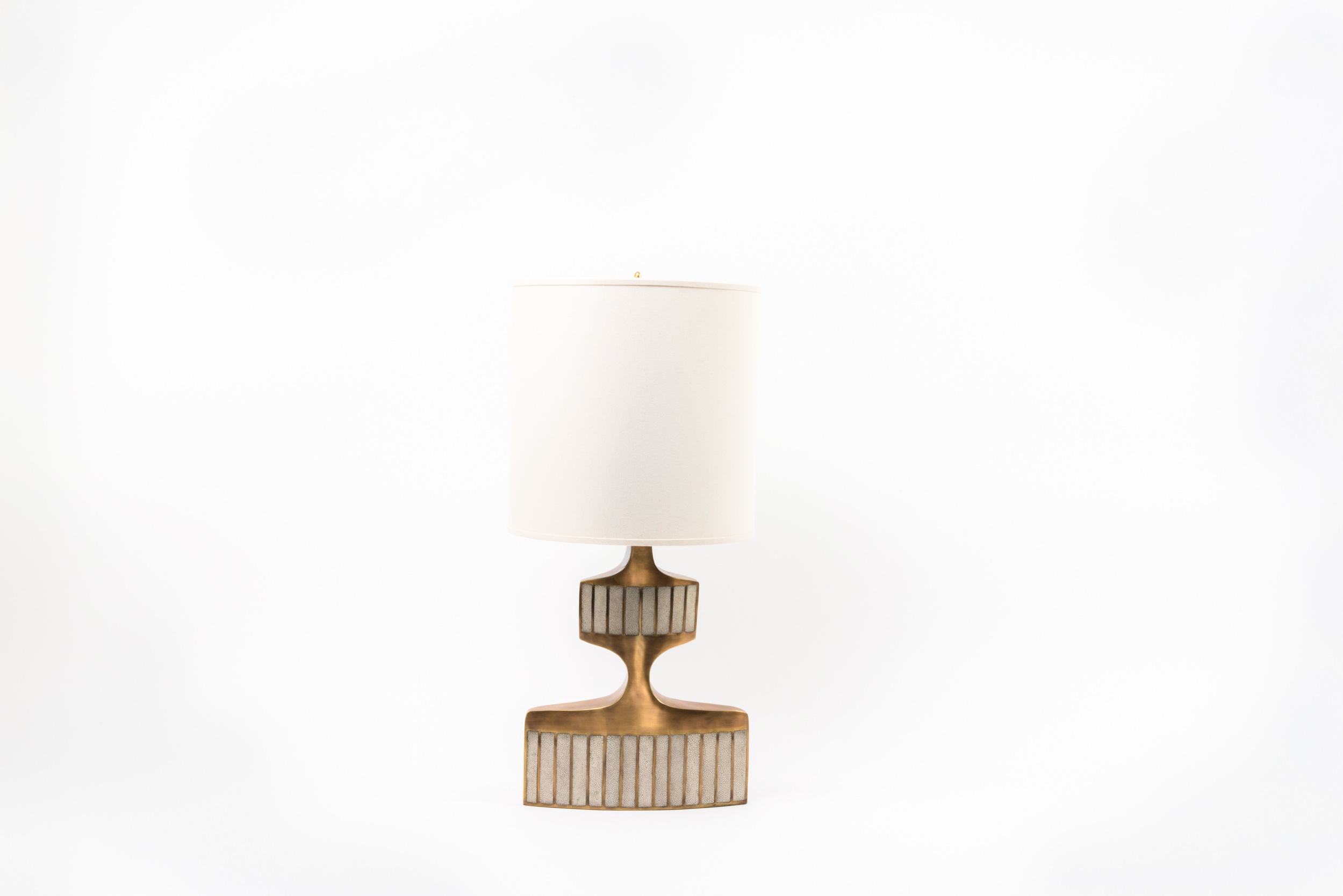 The Carmen ll Lamp is a sculptural piece with beautiful inlay detailing. Shade included.