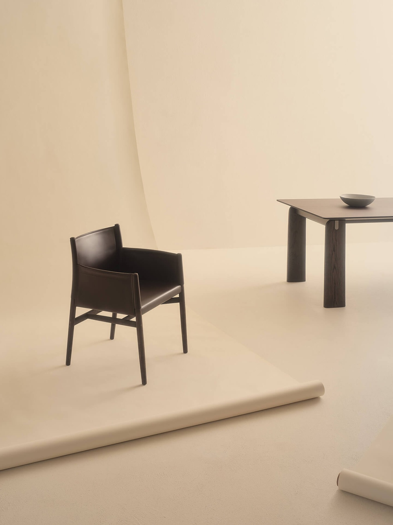 Gabriele and Oscar Buratti's Ayon chair invites you to discover the perfection of artisanal appeal combined with the industrial production of a seat made of light leather with an ash wood structure. Available with or without armrests, Ayon embraces a wide range of colours ranging from lighter and cooler tones to warmer and more intense hues. The leather delicately wraps around the upper structure of the chair, offering a comfortable and refined seat. The visible stitching creates a fine pattern that highlights the manufacturing quality that distinguishes the chair. The natural characteristics and grain of the ash wood structure are emphasised by the thermotreated oak stain: thus, a combination of materials is born in which the beauty of imperfections in natural elements becomes the expressive strength of the design