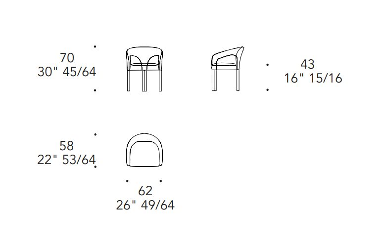 Poltroncina con struttura in legno, schienale e seduta imbottiti in pelle o tessuto, con dettagli in acciaio lucido.