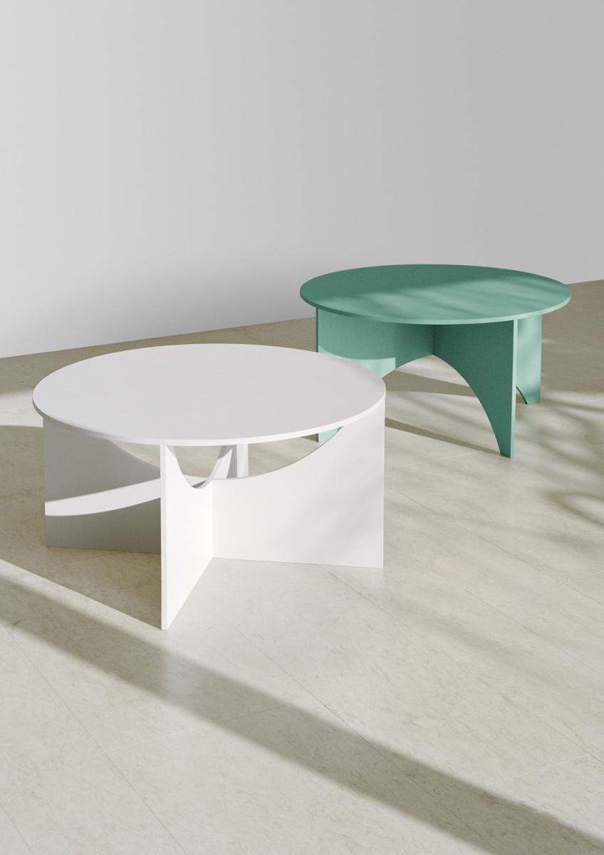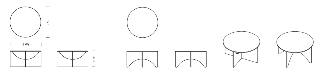 CHARLOTTE is the second from a series of coffee tables, designed in 1951 by German functionalist architect Ferdinand Kramer during his time in America. Named after his friend, the artist Charlotte Poseneske, the round coffee table CHARLOTTE bares sculptural qualities grounded in enduring and contemporary relevance. Similar to a clothing pattern, the table’s components are cut out of a single plywood sheet. The easily invertible and collapsible CHARLOTTE is also part of Ferdinand Kramer’s successful "Knock-Down" series. The measurements of the base are identical to those of the square CALVERT. Its round table top however makes CHARLOTTE the larger of the two coffee tables. CHARLOTTE is available in oak veneer as well as coloured lacquer.