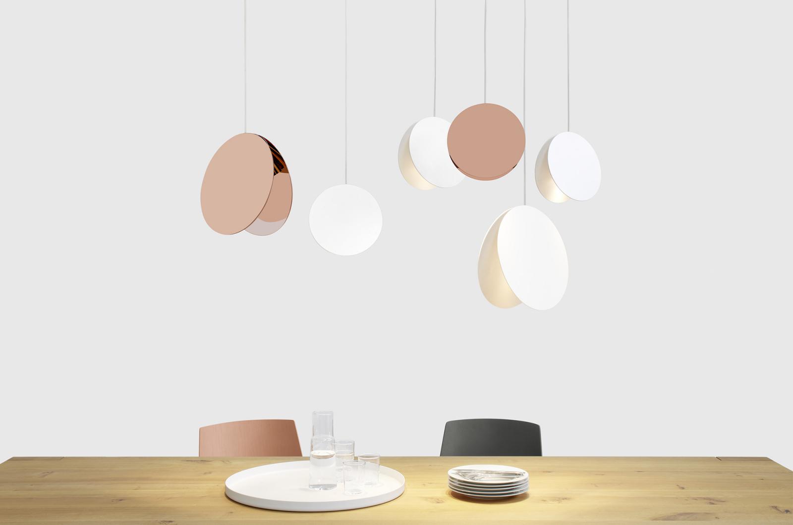 Open to numerous compositions depending on size, colour and material, NORTH directs an intriguing play of light and shadow. Reduced to a core circular shape, the light playfully signifies abstract geometry or lunar phases, changing its appearance depending on the viewer’s perspective.