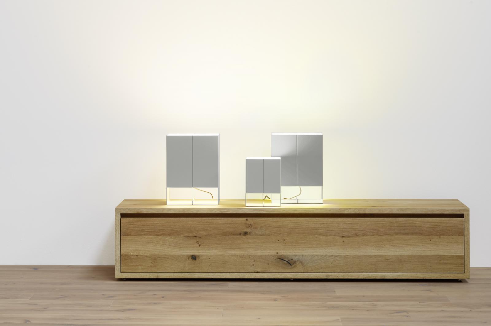 With its inherent sculptural quality and accurate folds the light SEAM TWO is an identifying icon for e15. Applying simple but elaborated construction methods and balanced proportions, SEAM TWO follows Mark Holmes' principle of reduced components and focuses on the element of light itself. Available in two sizes, SEAM TWO is made of firmly bonded laser cut folded sheet aluminium. As part of E15 SELECTED, SEAM TWO is also available in solid polished copper, notably underlining its refined materiality.