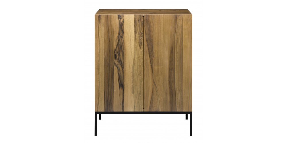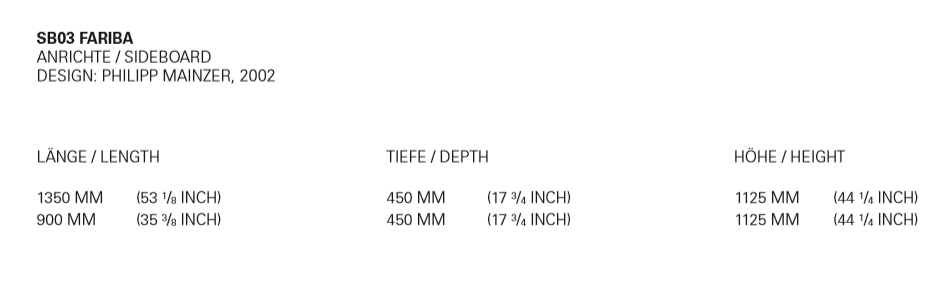 The sideboard FARIBA is particularly striking with its vertical display of solid wood grain. FARIBA elegantly highlights the combination of solid wood and a seamless stainless steel frame. The sides of the drawers have an end-to-end bevel functioning as handle. FARIBA is also available in a two door version and with a powder-coated steel frame.