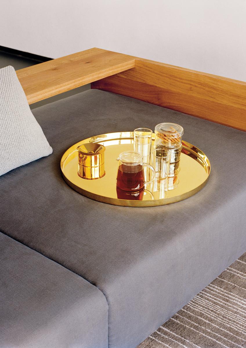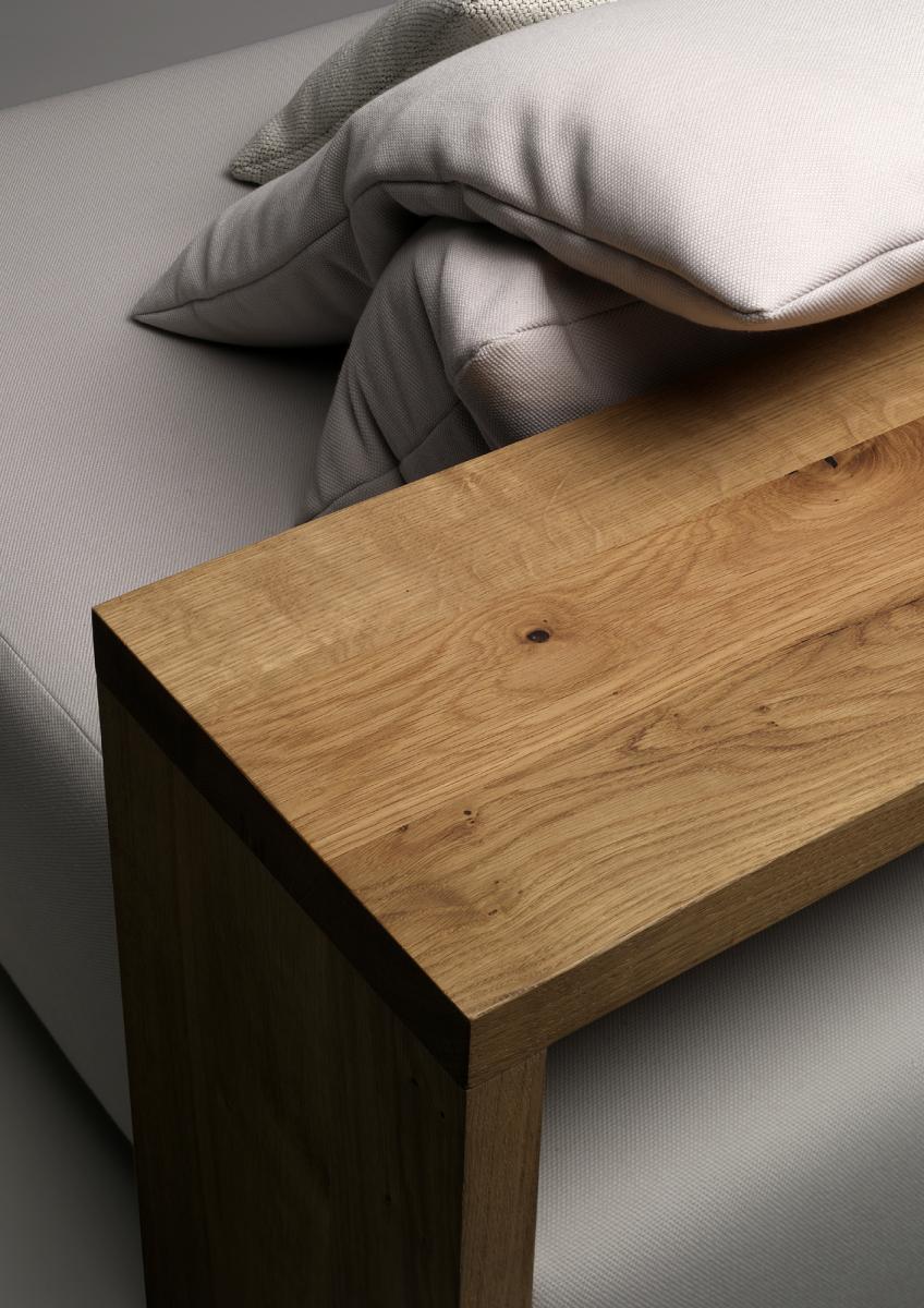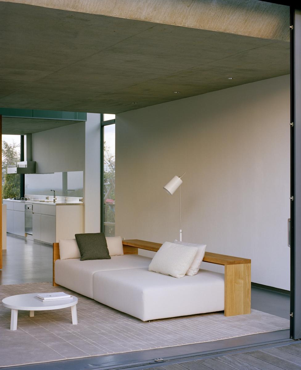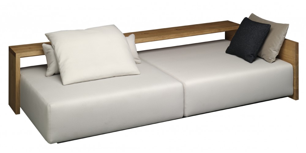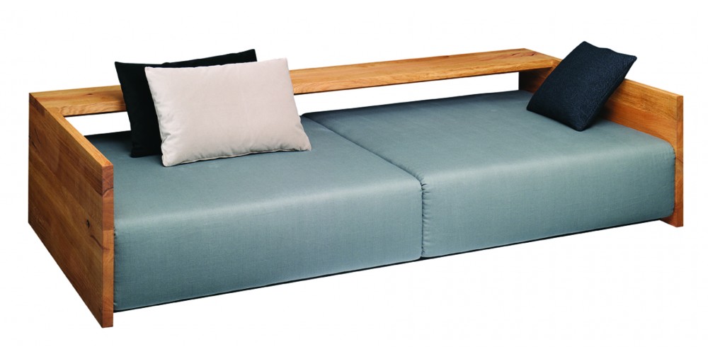 In its form and material, the KASHAN sofa epitomizes the logical continuation of e15 design. The 550 MM (21 5/8 INCH) tall backrest is notched to the equally tall side frames, underscoring the contrast of the cross grain and the end grain where the two intersect. The seating height is 350 MM (13 3/4 INCH). Removable fabric covers are available in different textures and colours. Six pre-selected fabric combinations, as well as sample fabrics for individual selections are available from e15 upon request.
