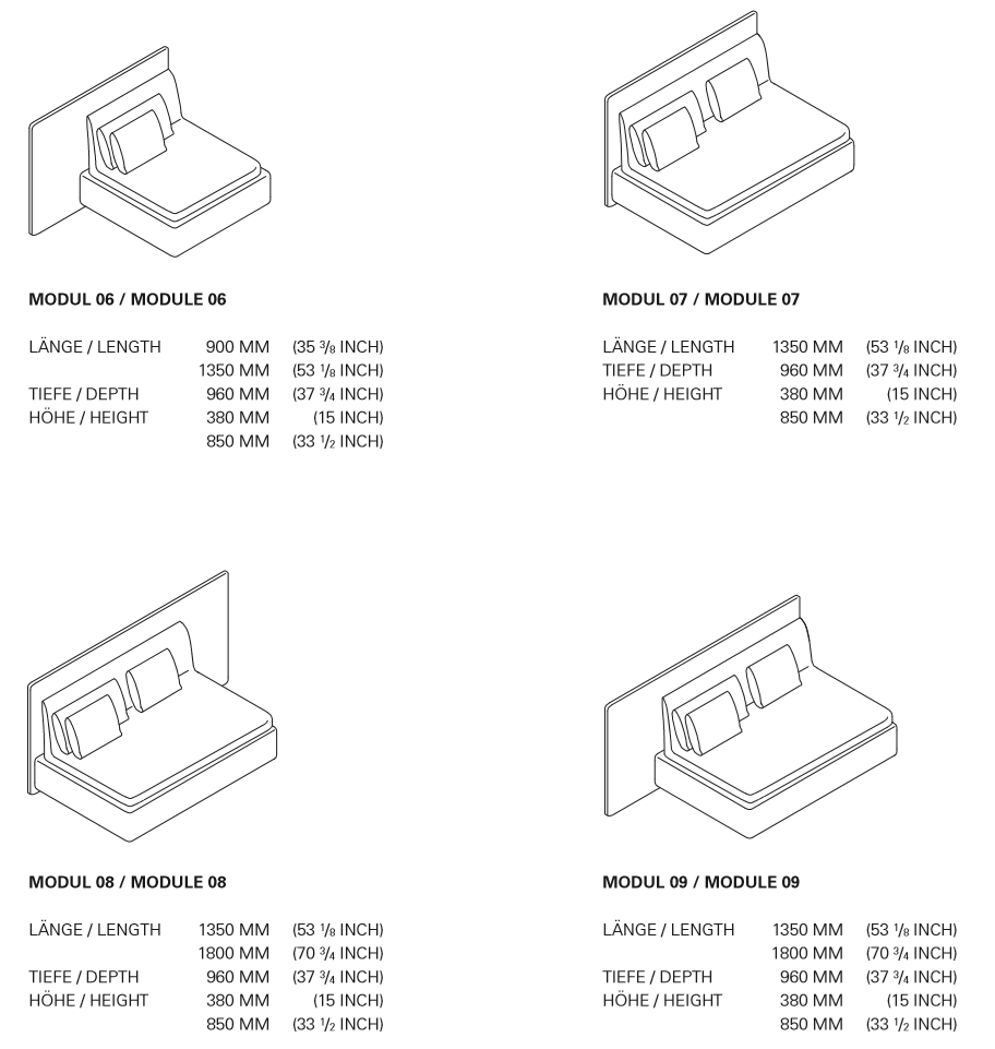 The SHIRAZ sofa was inspired by loosely conjoined, communication enhancing traditional Persian seating islands as well as by classical seating furniture found in western salons and hotel lobbies. The SHIRAZ series underlies a flexible system of seating options that impressively harmonises modern and traditional elements. The central element of this design concept is the ability to combine various backrests with different seating elements. Each module of the sofa set contains two elements the base SHIRAZ (with or without a backrest, as desired) and the ELAM seat – an oversized down cushion that completes the sofa component. As resting accessories, we recommend the AMIR armrest and the NIMA cushion, available separately in a variety of sizes.