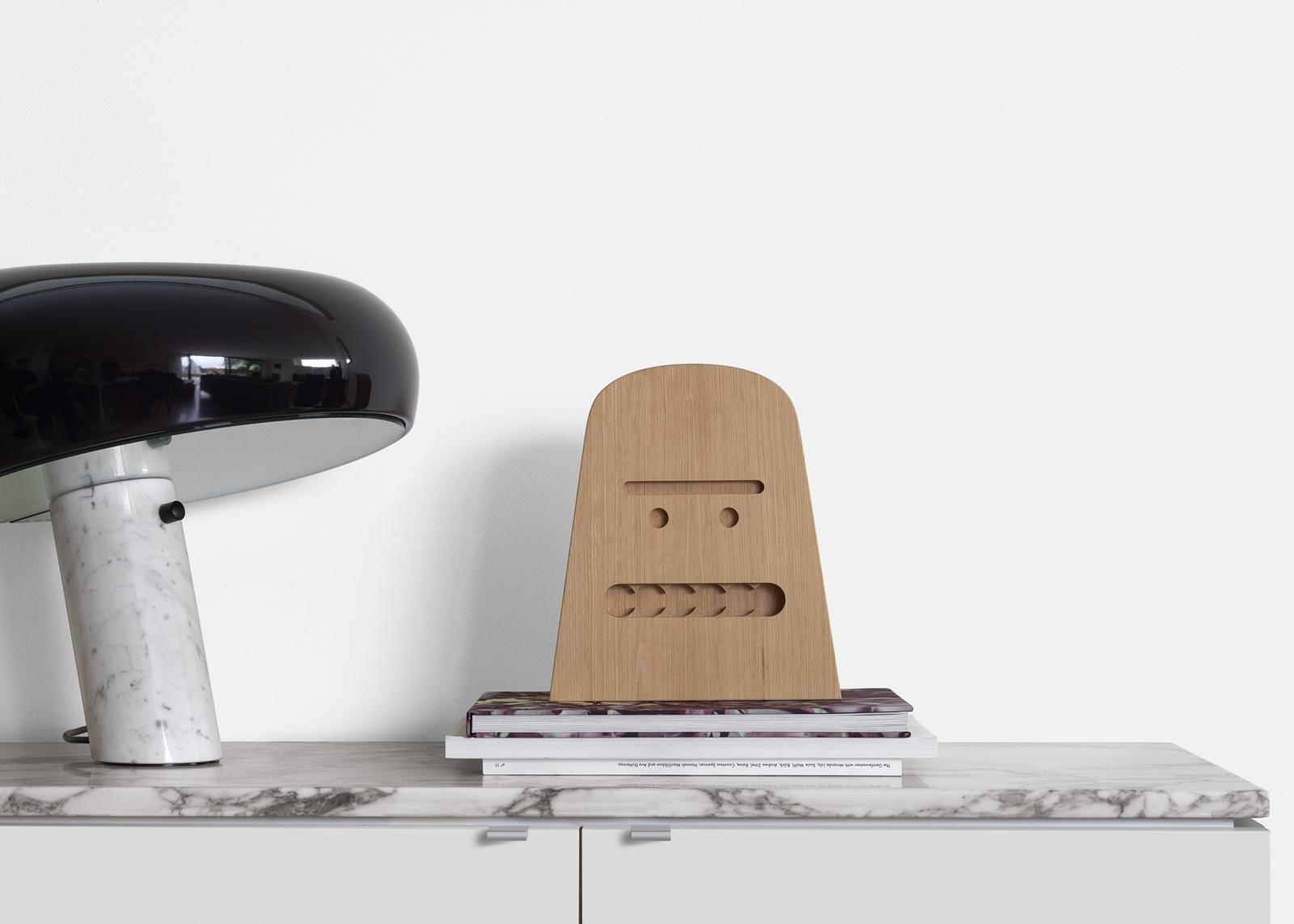 BIG B is an artful solid wood object, inspired by e15's modern design classic, the solid wood table BIGFOOT? and its patron Bigfoot, believed to roam the forests of North America. Made from untreated solid oak with a material thickness of 60 MM, BIG B provides a playful addition for any home or office.