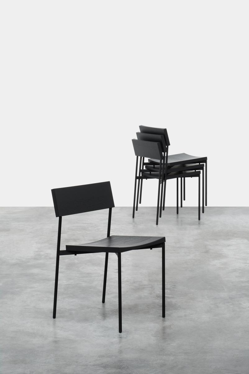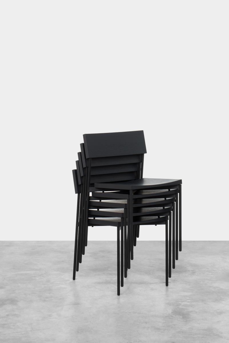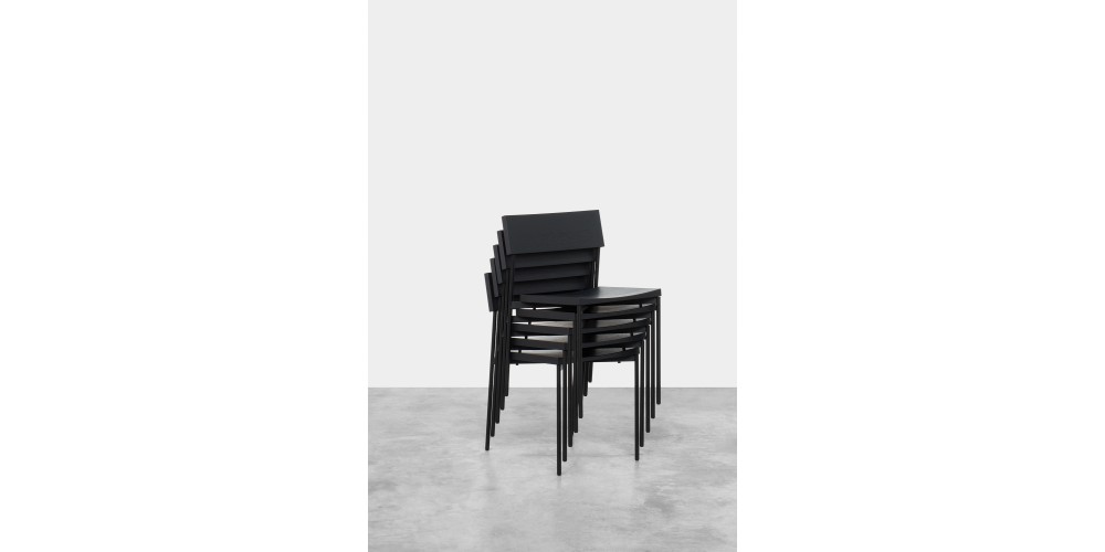 Chair HENNING with its minimal and linear silhouette unifies a shaped solid wood seat and backrest with powder-coated steel or brushed stainless steel frame. HENNING is a comfortable and elegant stackable chair that serves various interior purposes.