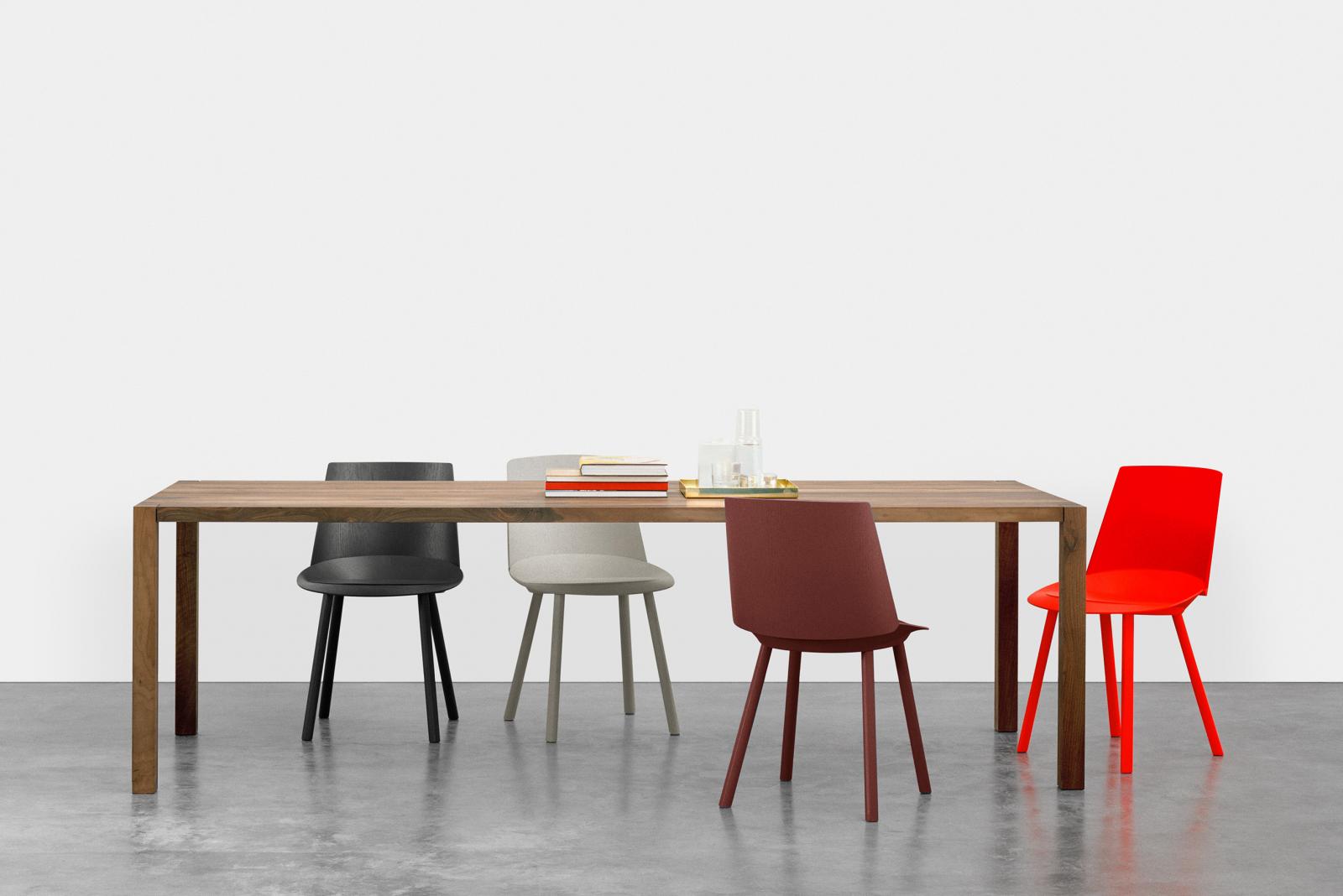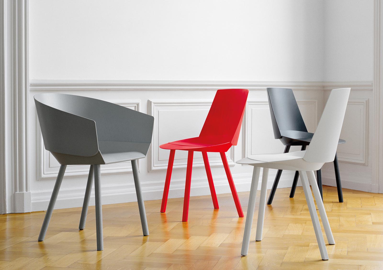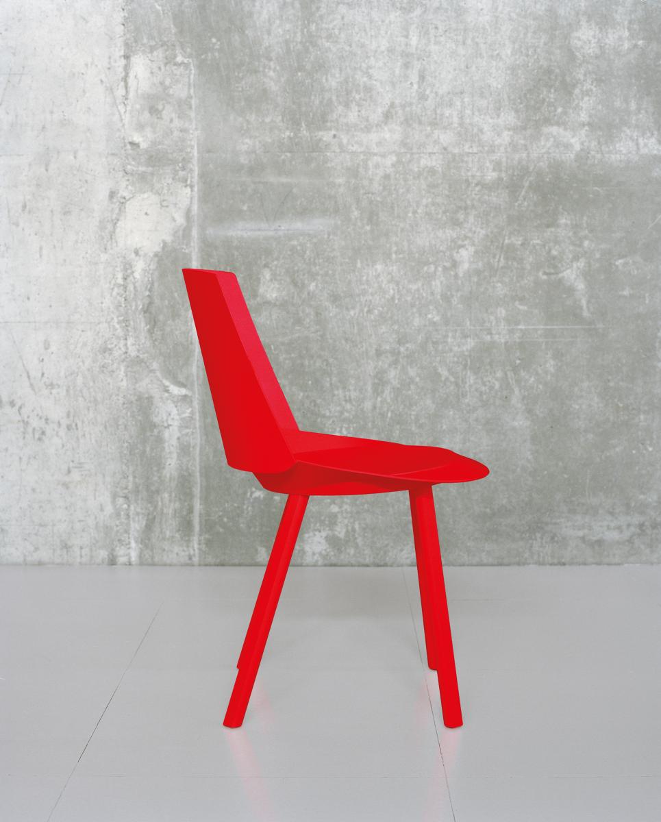In his search for an ergonomic, organic seating shell without involving expensive tooling Stefan Diez was inspired to apply techniques used for the construction of wooden gliders and airplanes. The result is an original silhouette, couture inspired construction and colour palette including neon red that have since made HOUDINI a design classic, and an identifiable icon for e15.