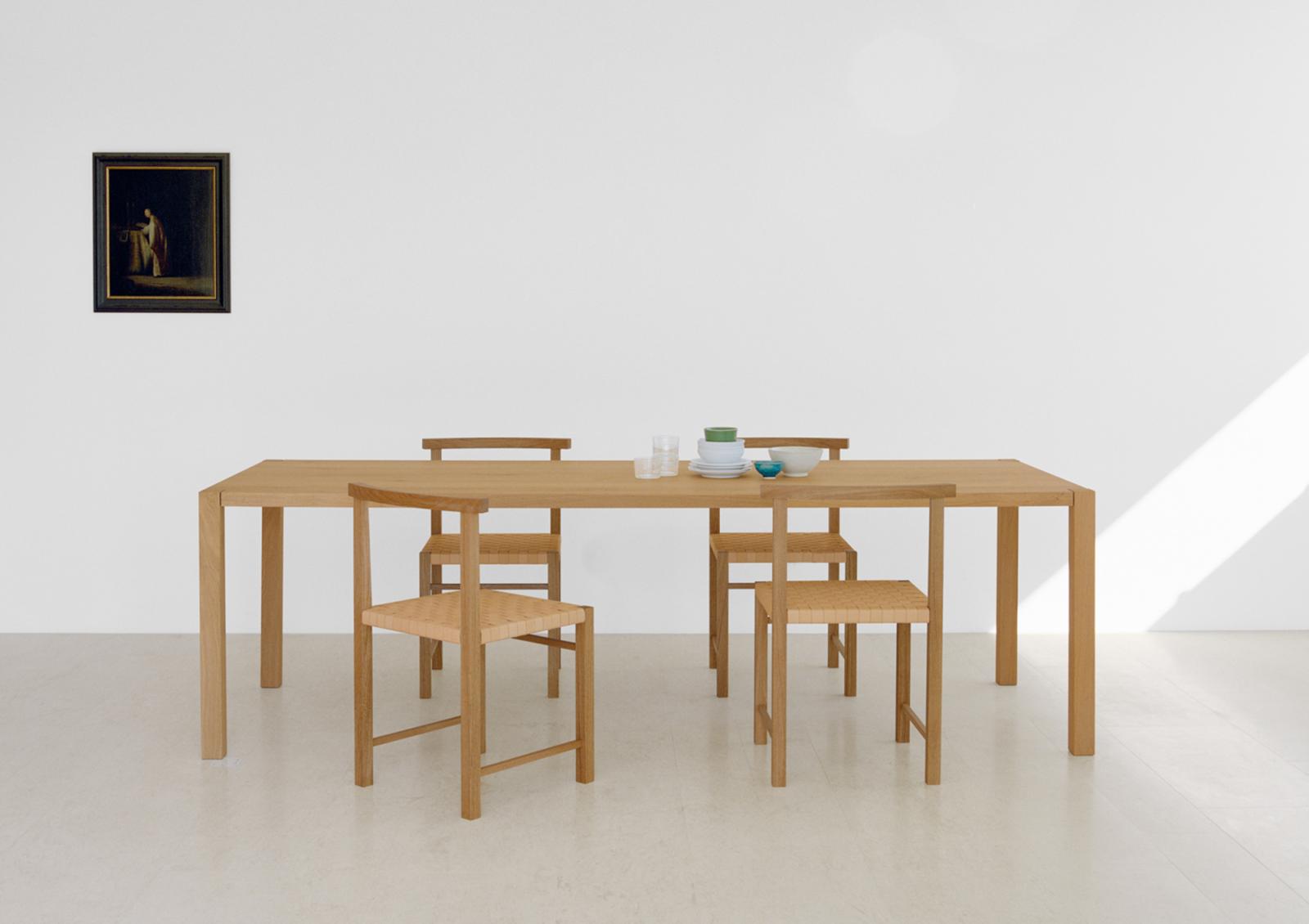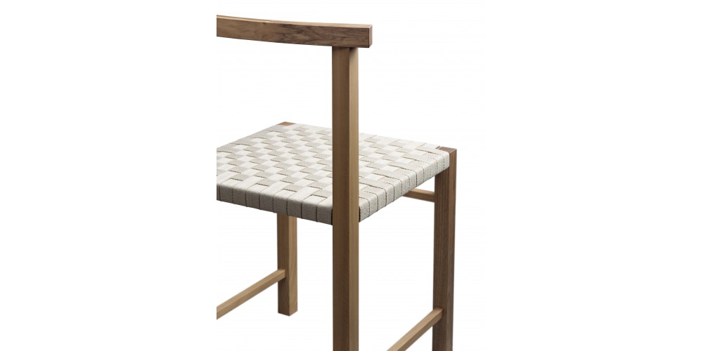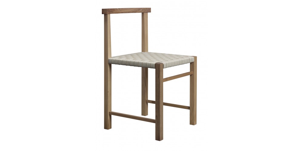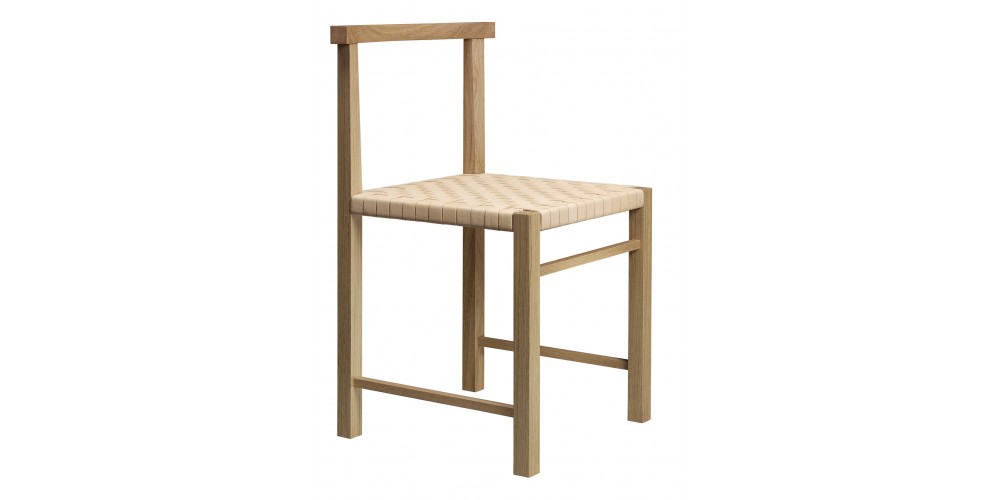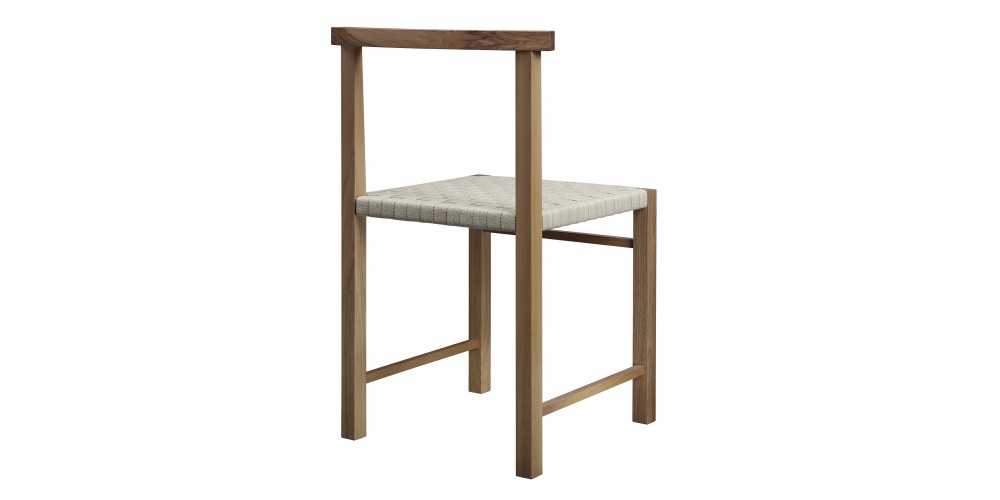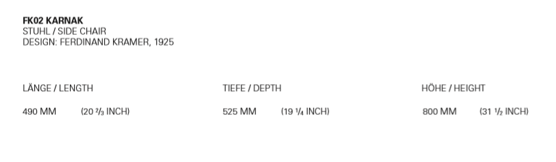Designed in 1925, the elegant and archetypal chair KARNAK features Ferdinand Kramer's masterful grip on simplicity. Available in waxed solid European oak or walnut, the linear profile of KARNAK is boldly reduced to the essentials, featuring a gently curved backrest and hand-woven seat, providing considerable comfort. The woven seat is finished in a textile band or vegetable tanned leather, which is luxuriously soft and will patinate with exposure to direct light. With its spare and refined aesthetic the chair KARNAK is a signature piece suitable for diverse environments. Its frame is fitted with a steel profile for additional stability. KARNAK perfectly complements all tables in the e15 collection and is delivered as one piece.