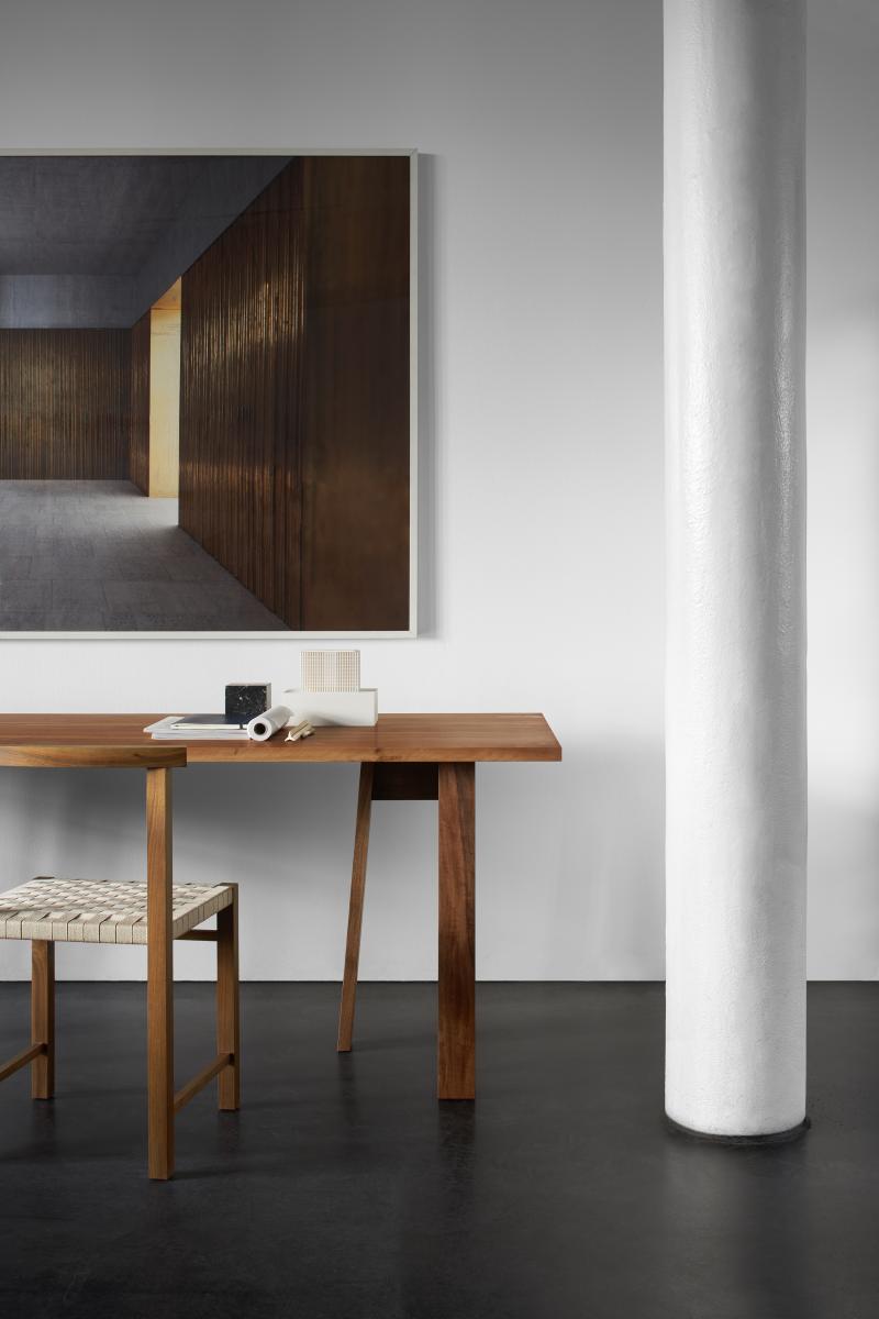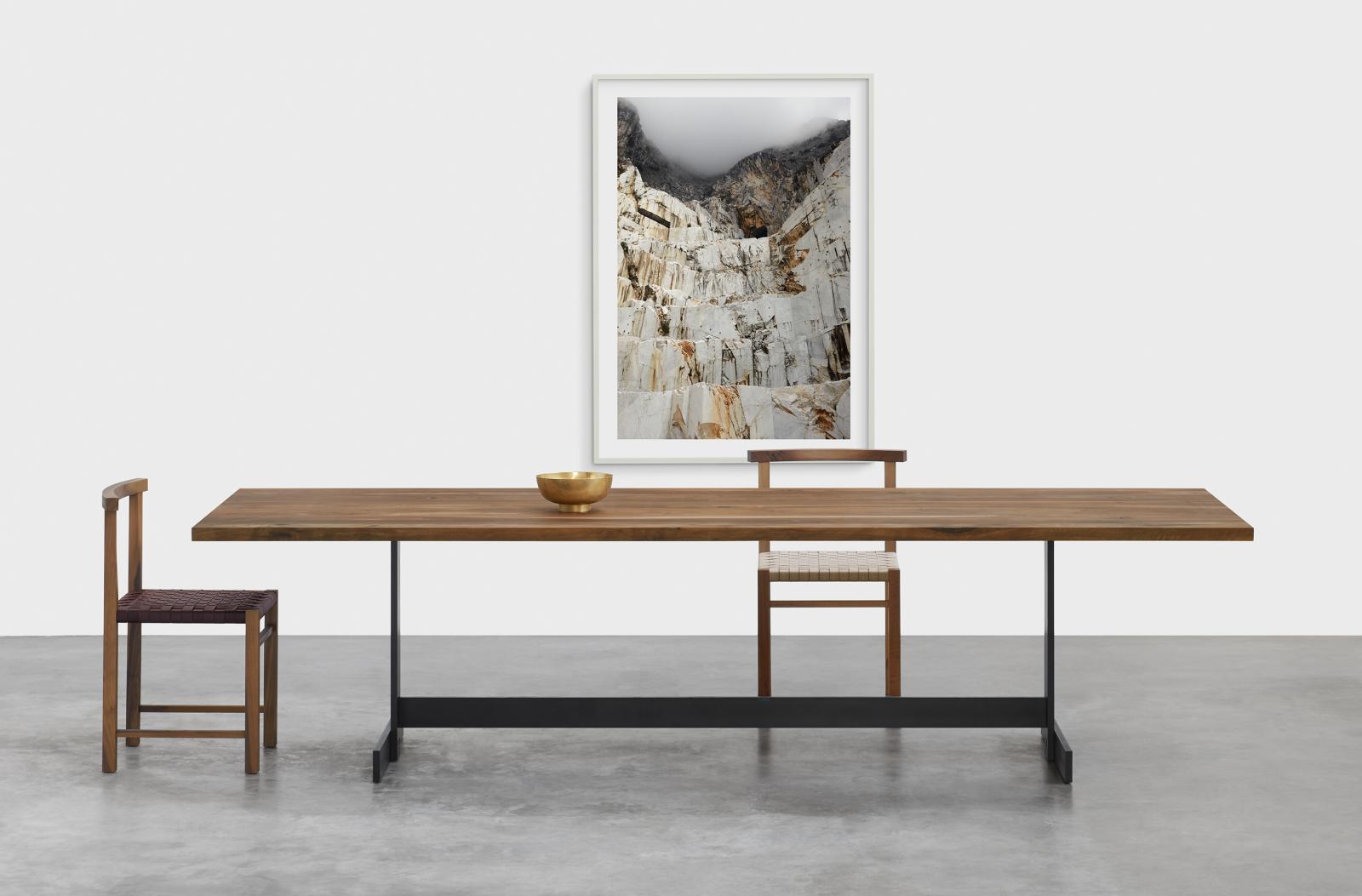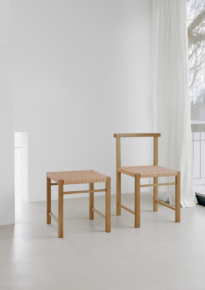 Designed in 1925, the elegant and archetypal chair KARNAK features Ferdinand Kramer's masterful grip on simplicity. Available in waxed solid European oak or walnut, the linear profile of KARNAK is boldly reduced to the essentials, featuring a gently curved backrest and hand-woven seat, providing considerable comfort. The woven seat is finished in a textile band or vegetable tanned leather, which is luxuriously soft and will patinate with exposure to direct light. With its spare and refined aesthetic the chair KARNAK is a signature piece suitable for diverse environments. Its frame is fitted with a steel profile for additional stability. KARNAK perfectly complements all tables in the e15 collection and is delivered as one piece.