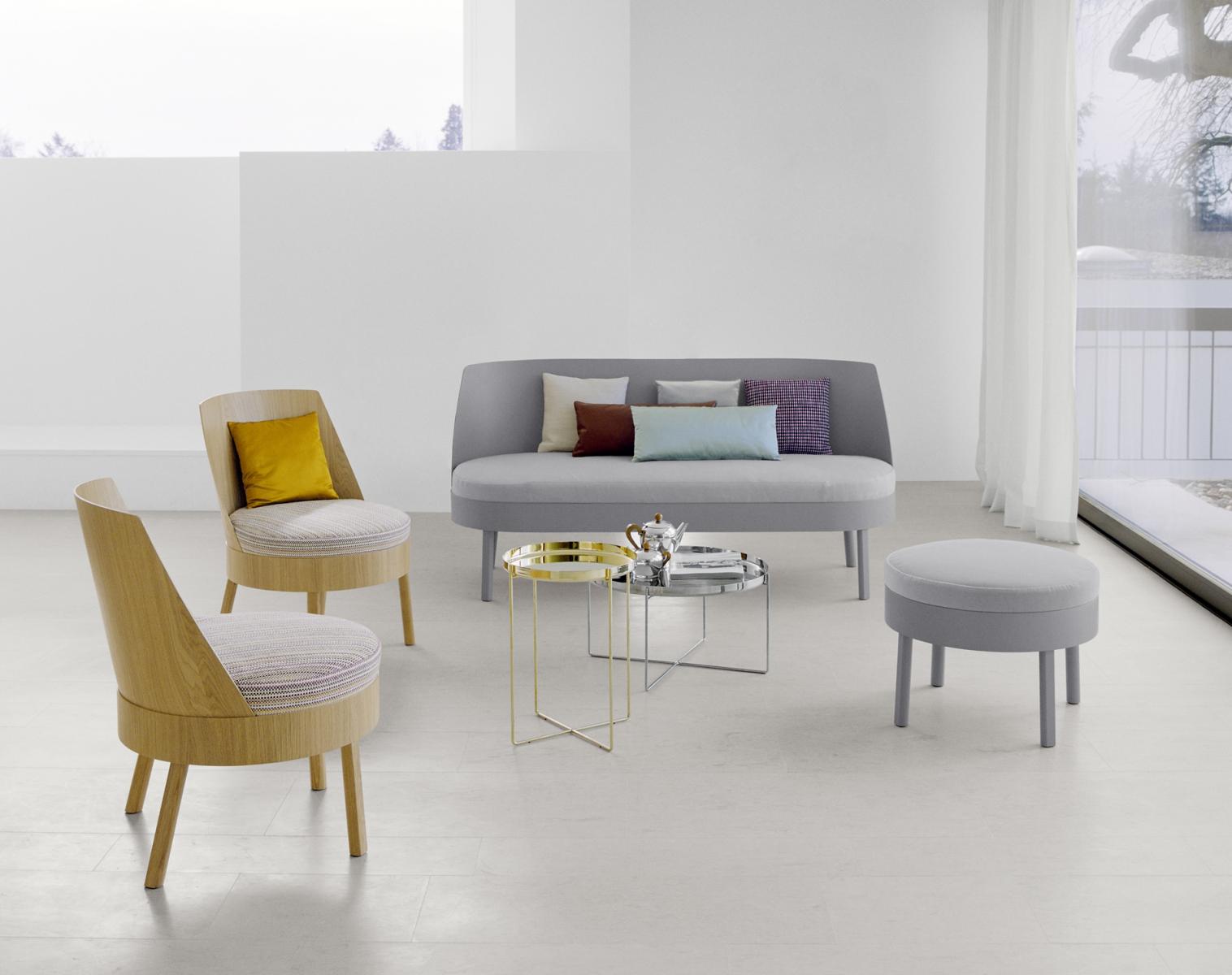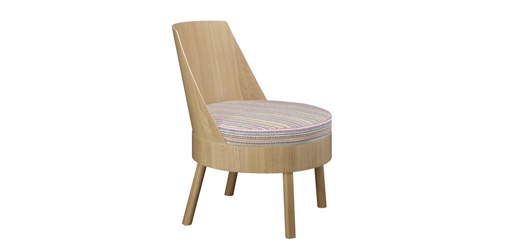 BESSY has a comfortable high back and round upholstered seat and is made from flexible oak- veneered plywood, lacquered. Reminiscent of a cocktail-lounger, the space-saving BESSY is suitable for private use as well as for contract use especially in hotel lobbies and bars. For more comfort and style, this lounge chair can be complemented with the cushion NIMA. Optionally, BESSY is also available as a stool without back rest. The upholstered seat is not fixed.