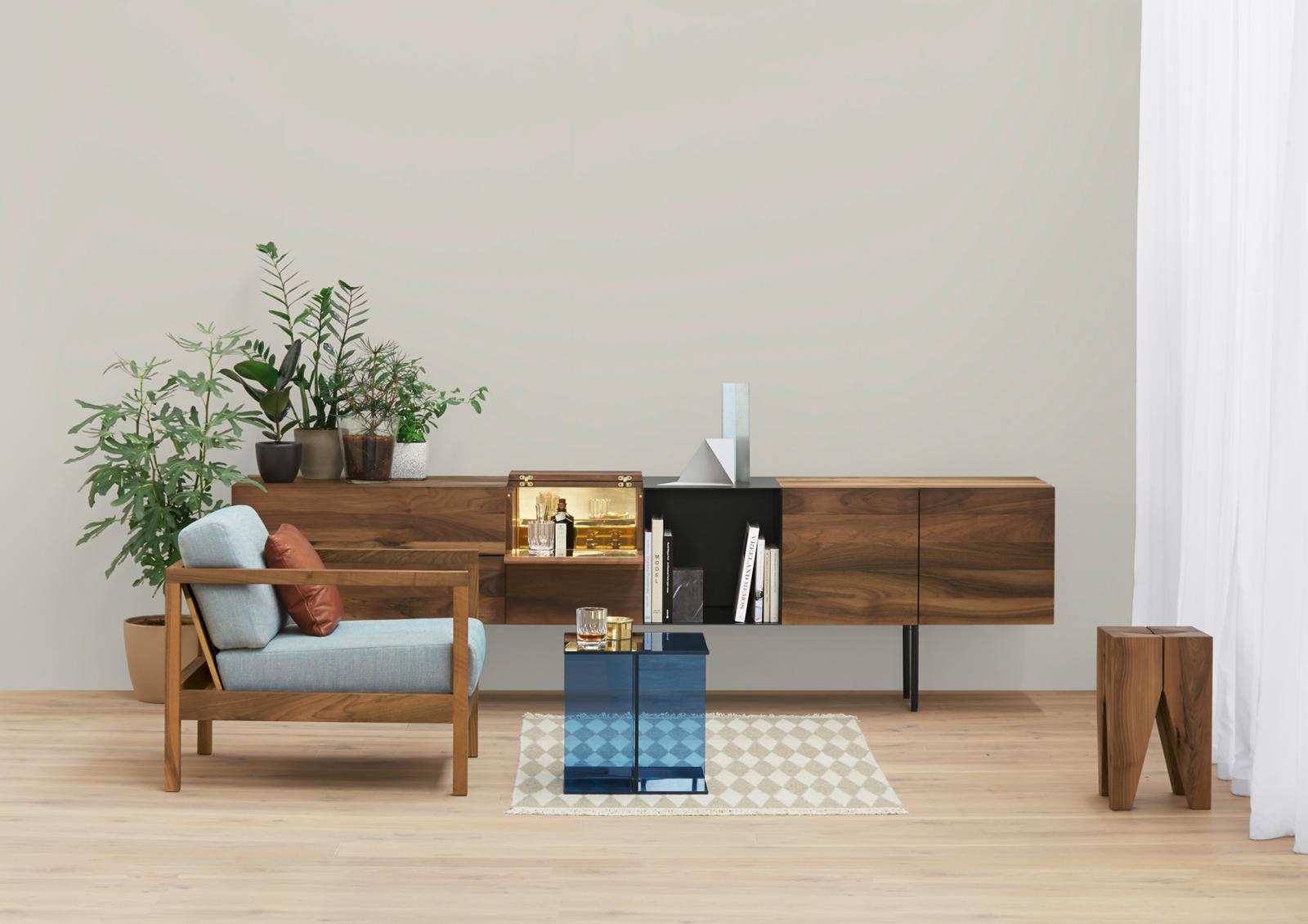 The armchair BYRON with its clear lines and distinctive armrests resembles a modern take on a classic smoking chair. BYRON has a classic wooden construction with a solid wood material thickness of 40 MM (1 5/8 INCH). Comfortable seating is ensured with upholstery belts and high quality foam. The armchair BYRON is made from oiled European oak or European walnut. For greater style and comfort, the armchair can be complemented with the cushion NIMA. A versatile and unique item for private and public use, BYRON complements amongst other items, the sofa SHIRAZ. Its seat height is 400 MM (15 3/4 INCH). There are no fixed upholstered elements as the cushions can be removed and are therefore easy to clean. The armchair is delivered as one piece.