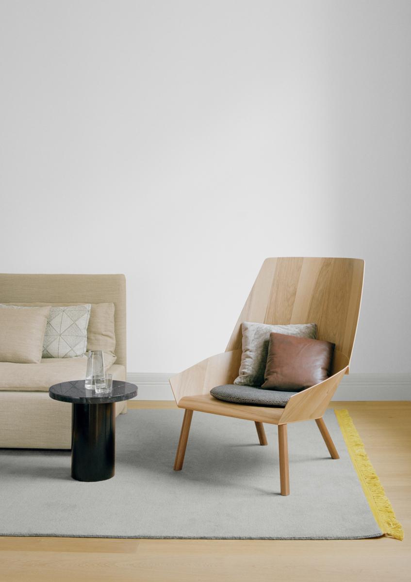 The lounge chair EUGENE makes an inspiring link to the chair family HOUDINI through its unique appearance and construction. With its high back, wide, deep seat shell and sloped back legs this generously proportioned lounge chair exudes lightness and leisure. Made from flexible oak-veneered lacquered plywood, EUGENE can be complemented with the seat cushion EUGEN S and cushion NIMA. Fixed upholstery of the seat is possible but due to its round bent wooden back, EUGENE offers ample comfort even without padding. The lounge chair EUGENE is a versatile and unique item that is ideally suited for private and public interiors.