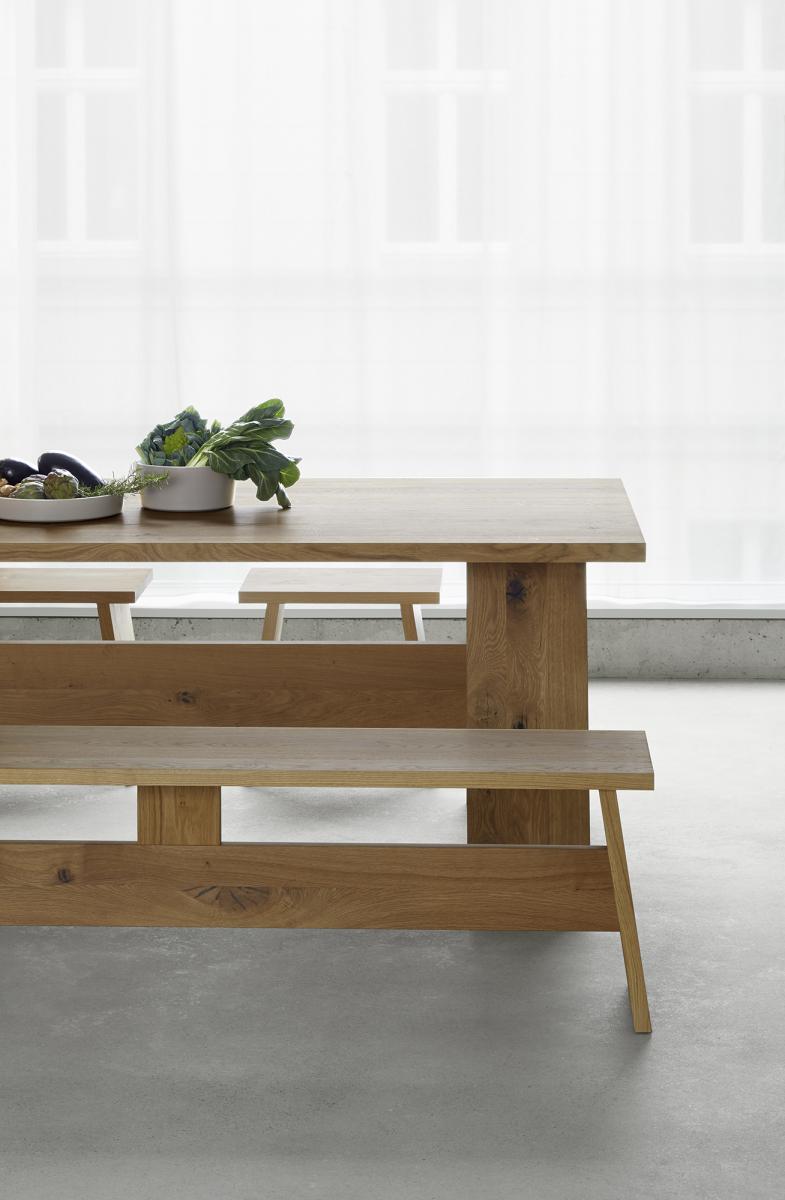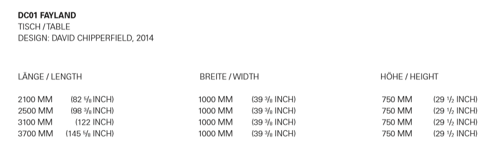 Originally conceived for an architectural project in the English countryside, table FAYLAND features the pure use of material and a clear design language, which are shared aesthetics of e15 and David Chipperfield. Made of solid wood, the constructive details are at the core of its refined and elegant design: a horizontal bar with centred support provides stability while the table ends overlap the frame, providing additional seating space. In addition to European walnut and solid oak in oiled or white pigmented surfaces.