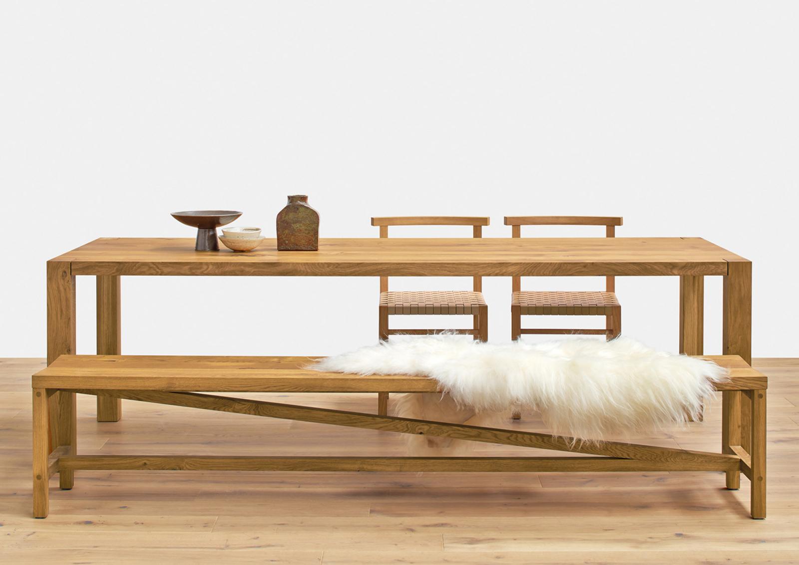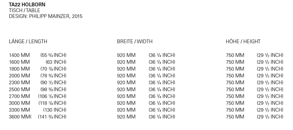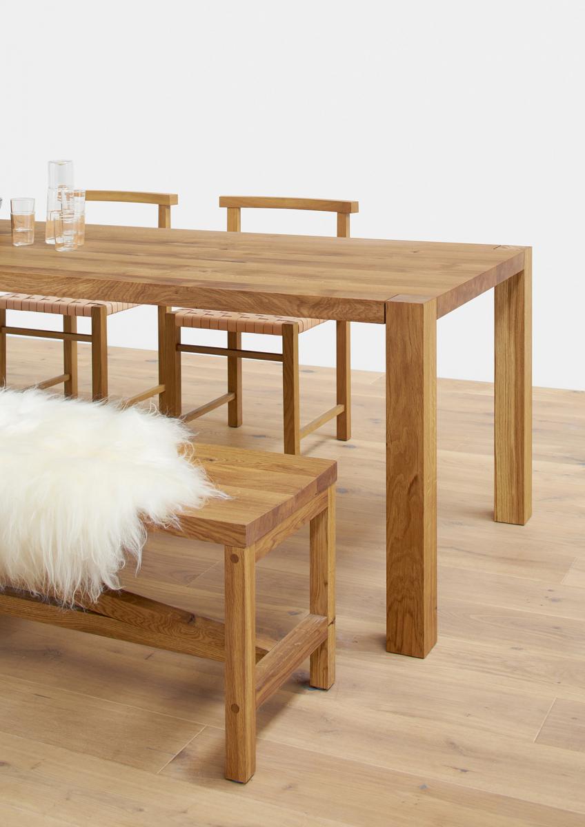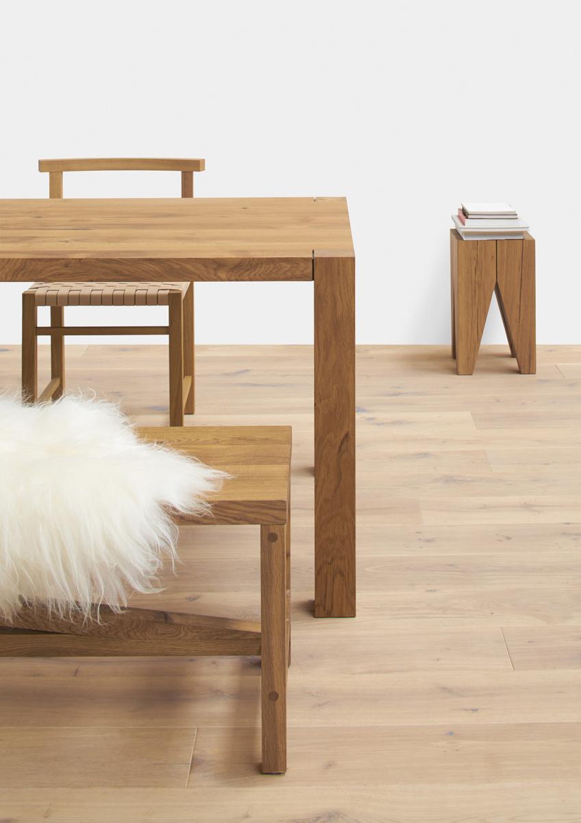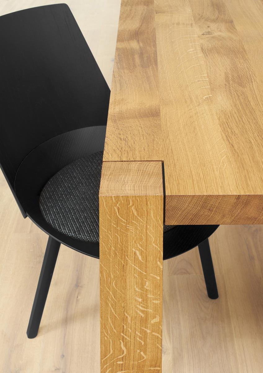 Characterised by square legs intersecting with the 50 mm tabletop, table HOLBORN is as a modern interpretation of e15’s iconic table BIGFOOT?. A structure incorporated into the tabletop provides high stability while the harmonious proportions of table top and legs result in a pleasing silhouette featuring the end grain of the wood. The refined and elegant dining table HOLBORN made from solid European oak or walnut is available in twelve different lengths.