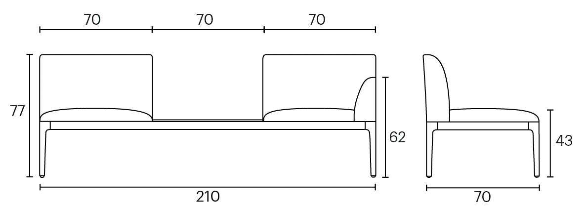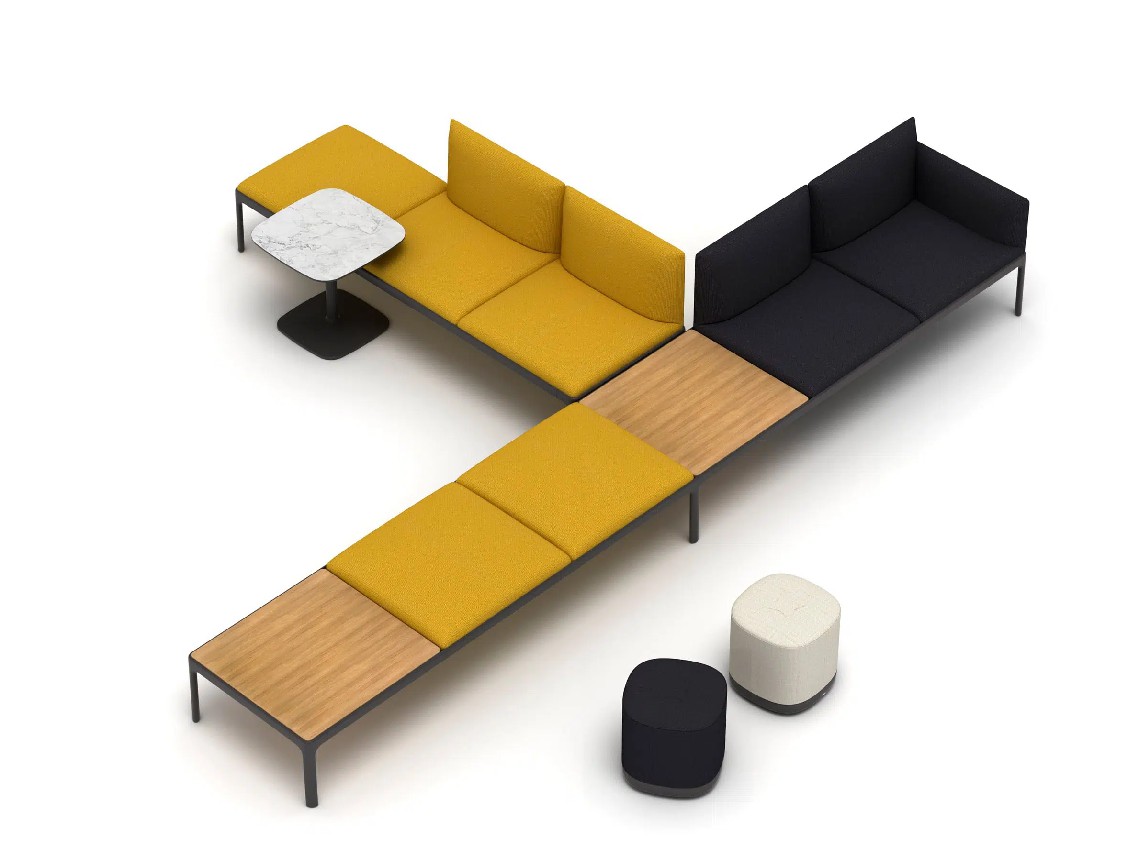 Kubika is a modular seating system that allows to create unlimited configurations through individual modules and accessories that are easily assembled. Its versatility and sophisticated design with simple lines allow adapting to any environment and need. It consists of seats with or without backrest, intermediate arms and table dividers. All the seats can be upholstered in all range of finishes and they are placed in a lacquered steel frame connected on different aluminum legs.