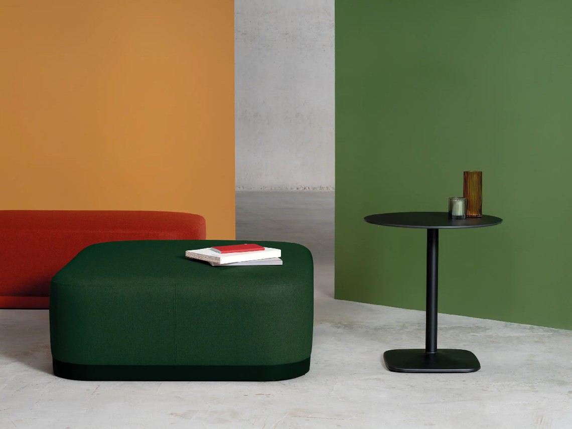The Puck lounge has an aluminium base lacquered in any of our colours. The seat can be upholstered in one or two fabrics and that the reason why it is possible to combine one, two or three tones in the same lounge. Available in three different sizes, this model is perfect for waiting areas and hotels because unique compositions can be made by using different lounges.