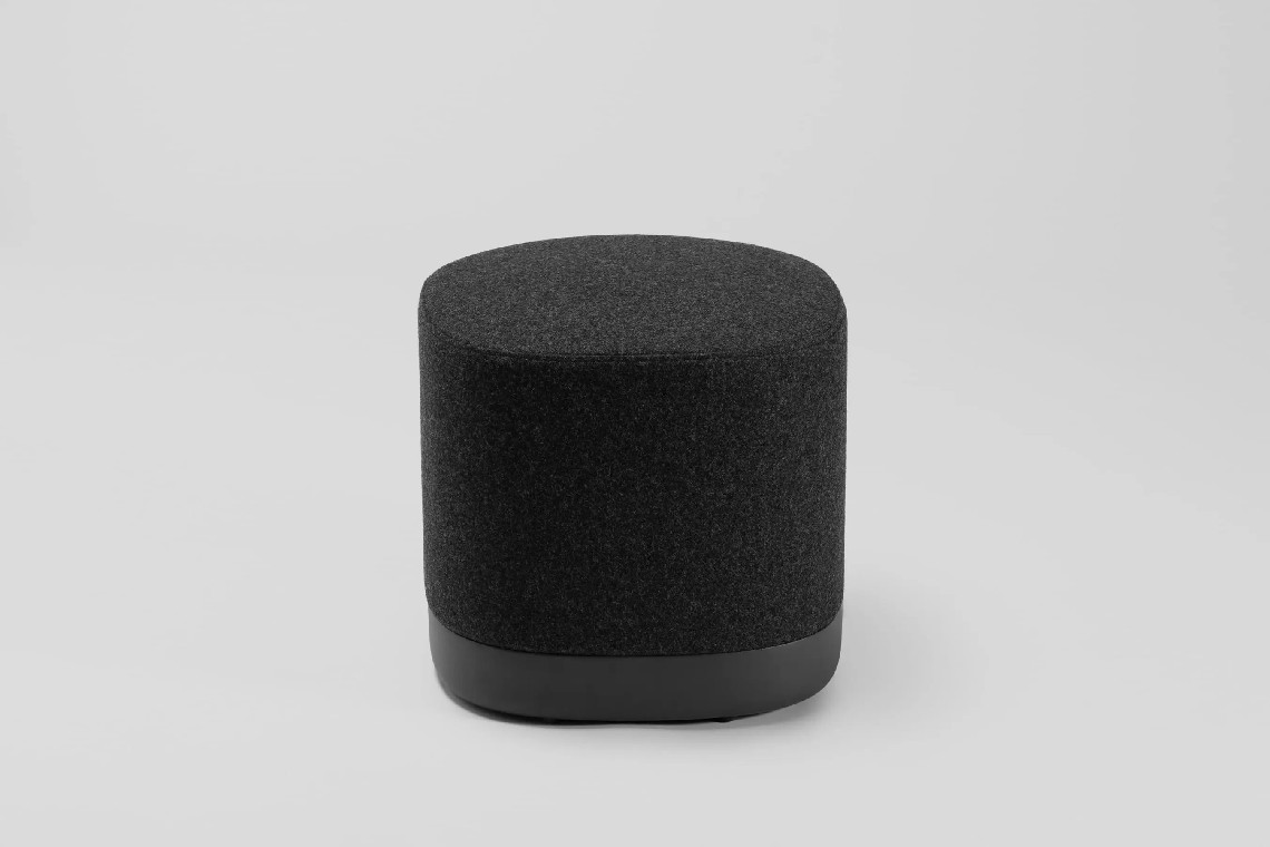 The low Puck pouf has an aluminium base lacquered in any of our colours and with or without castors. The seat can be upholstered in one or two fabrics, and that is why it is possible to combine one, two or three tones in the same pouf.