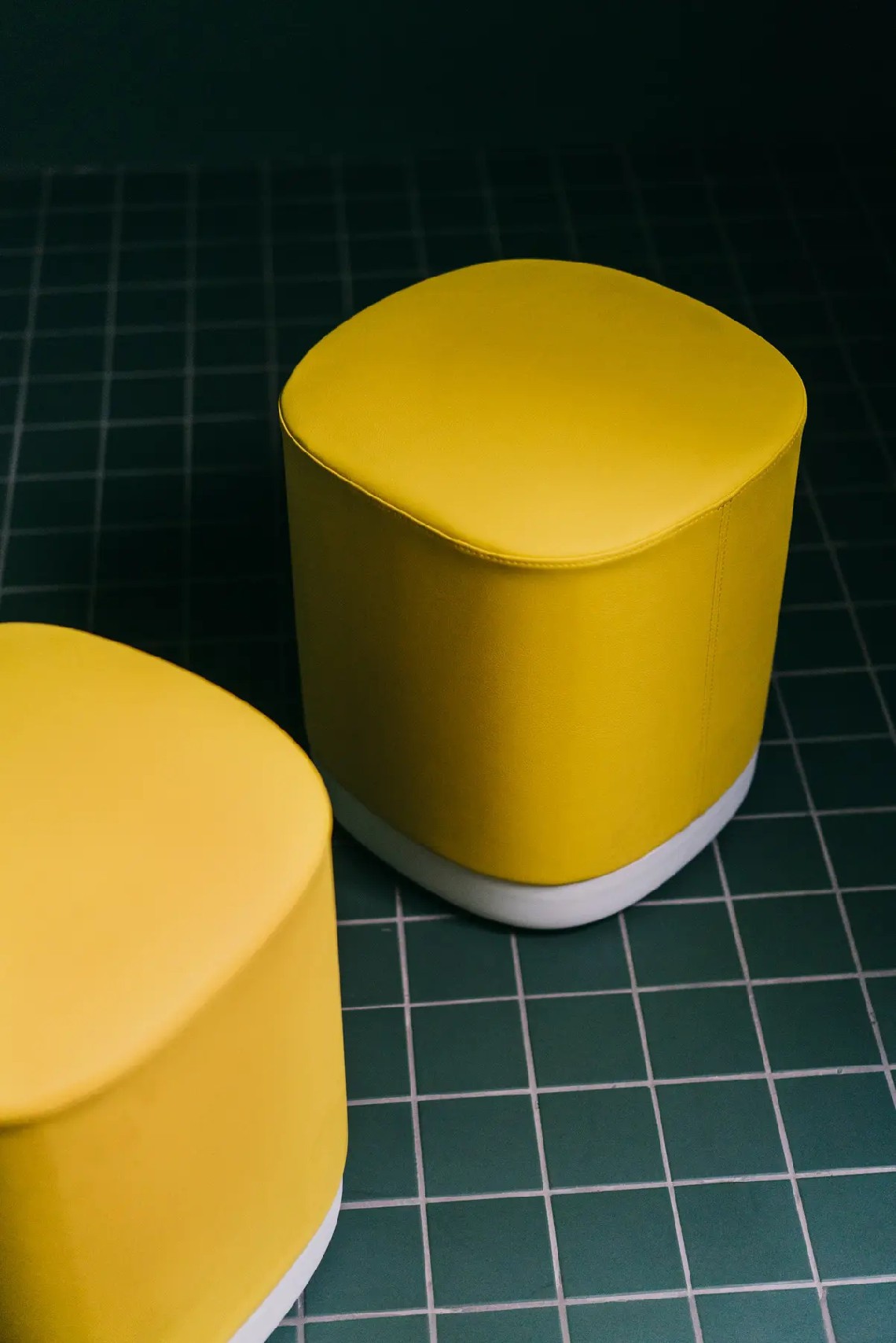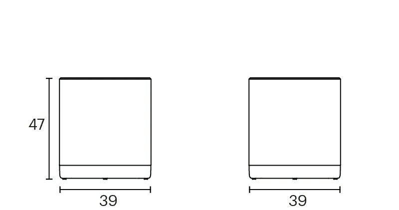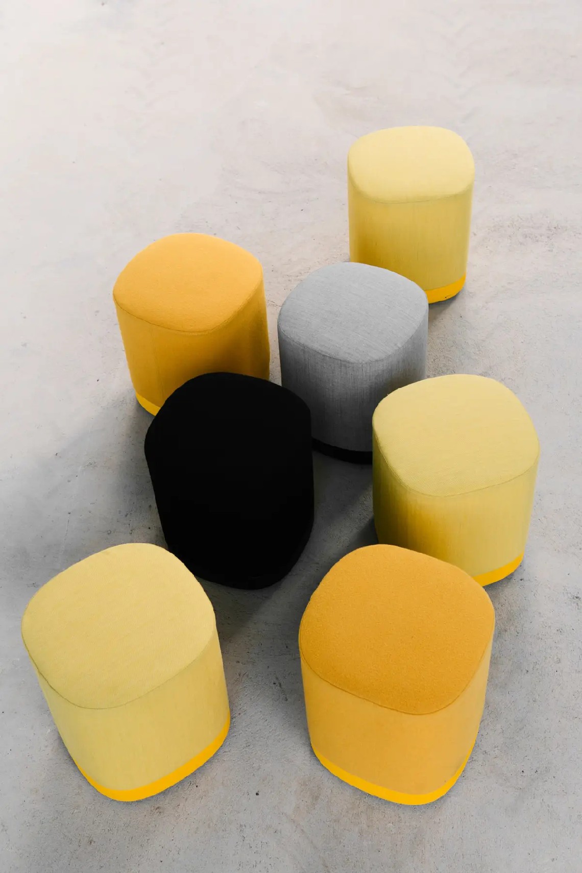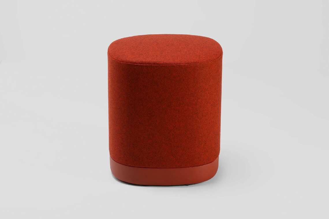 The Puck pouf has an aluminium base lacquered in any of our colours and with or without castors. The seat can be upholstered in one or two fabrics and that is the reason why it is possible to combine one, two or three tones in the same pouf.