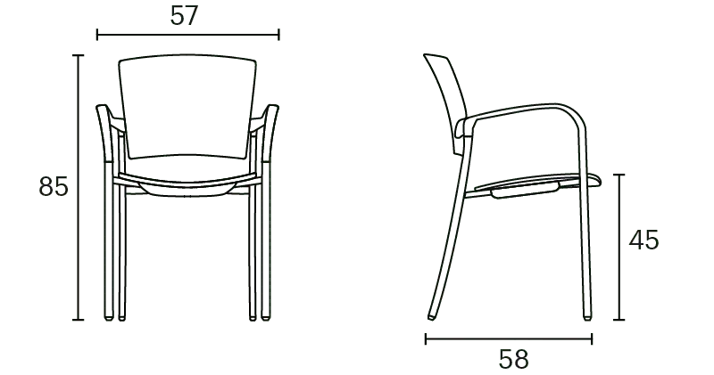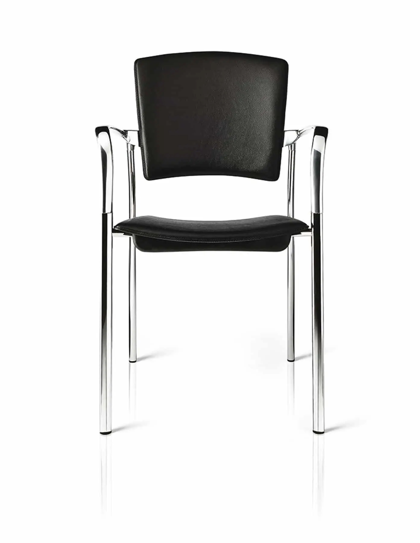 The 4-legged steel structure and the aluminium armrests of Eina chair are offered in chrome/polish or lacquered in any of our colours, and the seat and backrest are produced in polypropylene and can be upholstered in a broad range of fabrics. The sturdiness of this model means it easy blends into high-traffic spaces like waiting rooms, hospitals, and the public and contract sector.