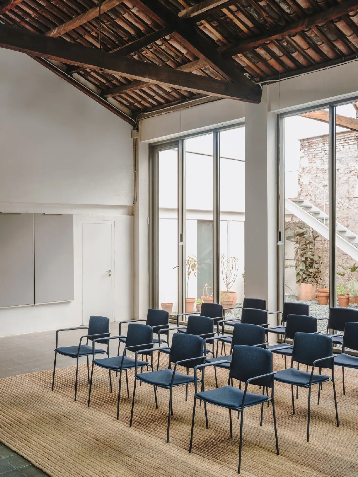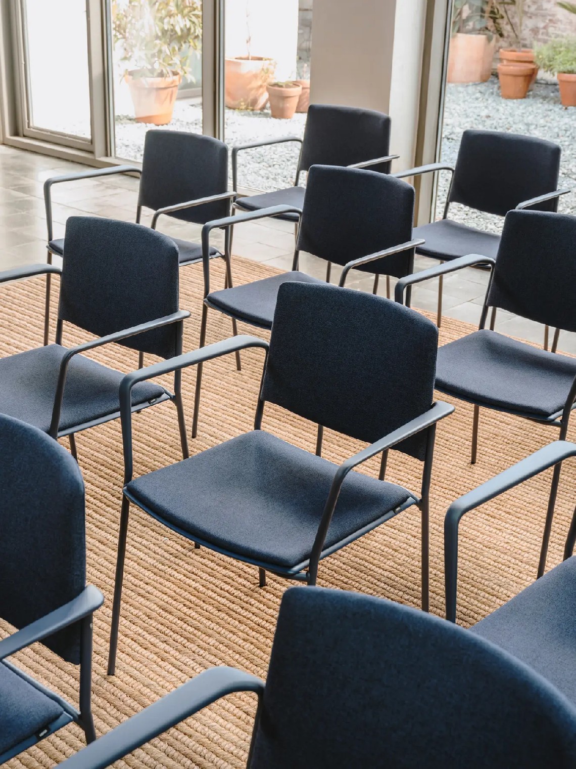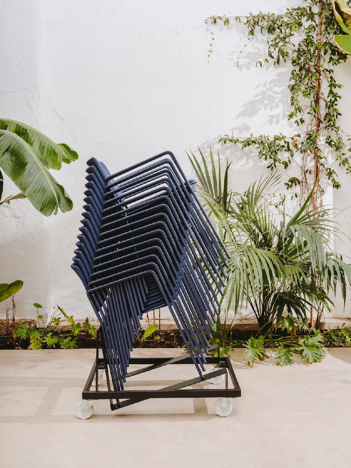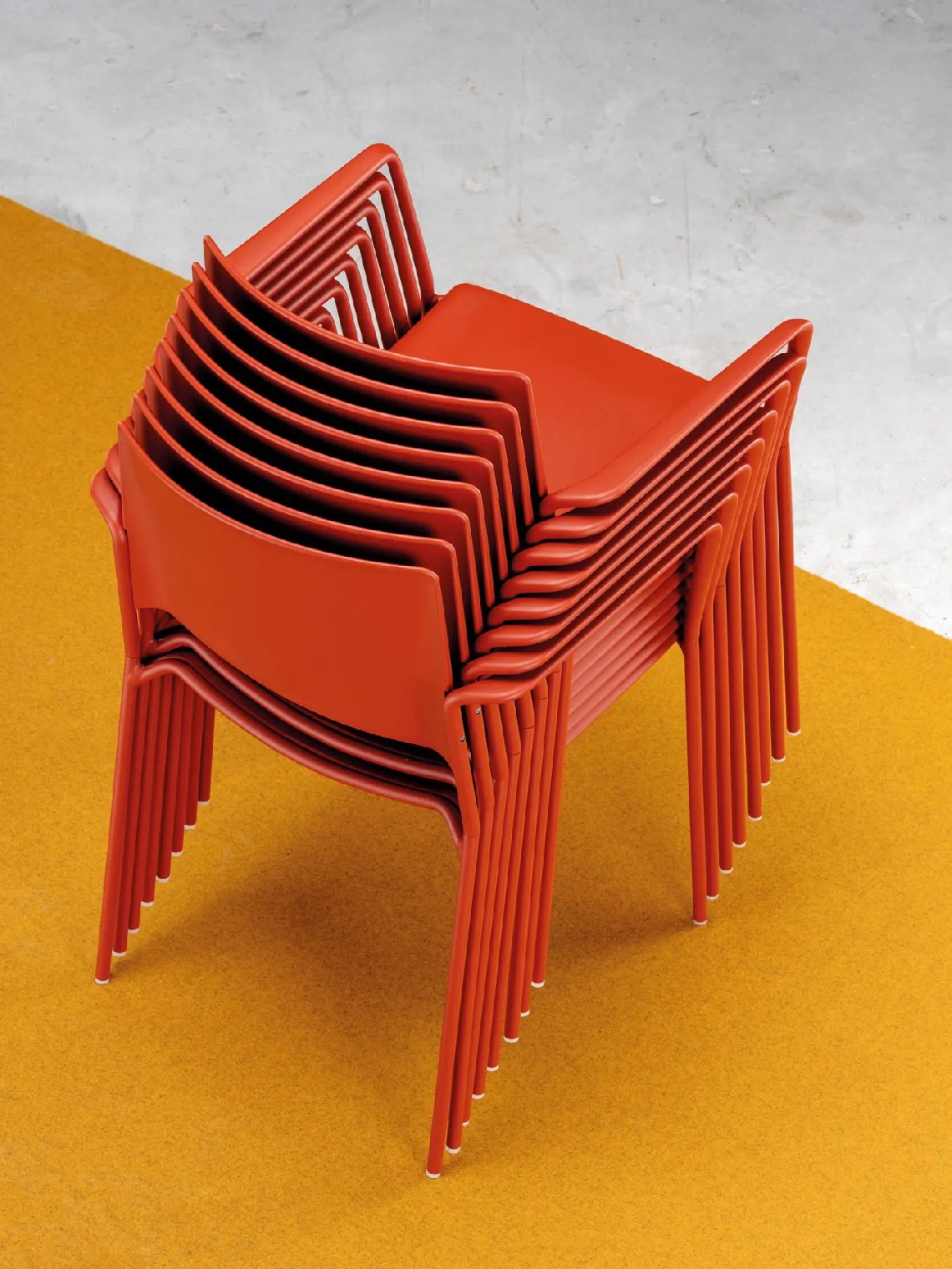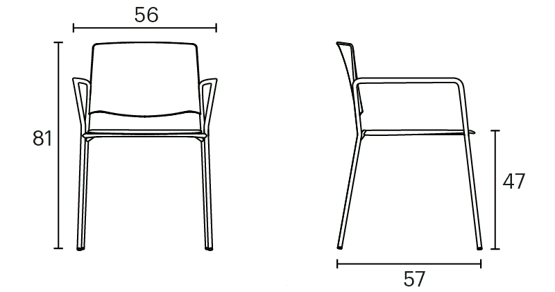 Ema 4L armchair is strong and lightweight and allows to stack up to 30 units, which makes it perfect for all kind of spaces, in special for contract sector. The 4-legged steel structure and the aluminium armrests can be chromed/polished or lacquered in any of our colours and the seat and backrest are available in polypropylene or upholstered. Besides, it has an upholstered seat pad available, which is very useful for multipurpose or crowded spaces, improving stacking by causing less friction than the full upholstery version. In this case, the stackability reaches up to 20 units on the trolley and 15 units on the floor.