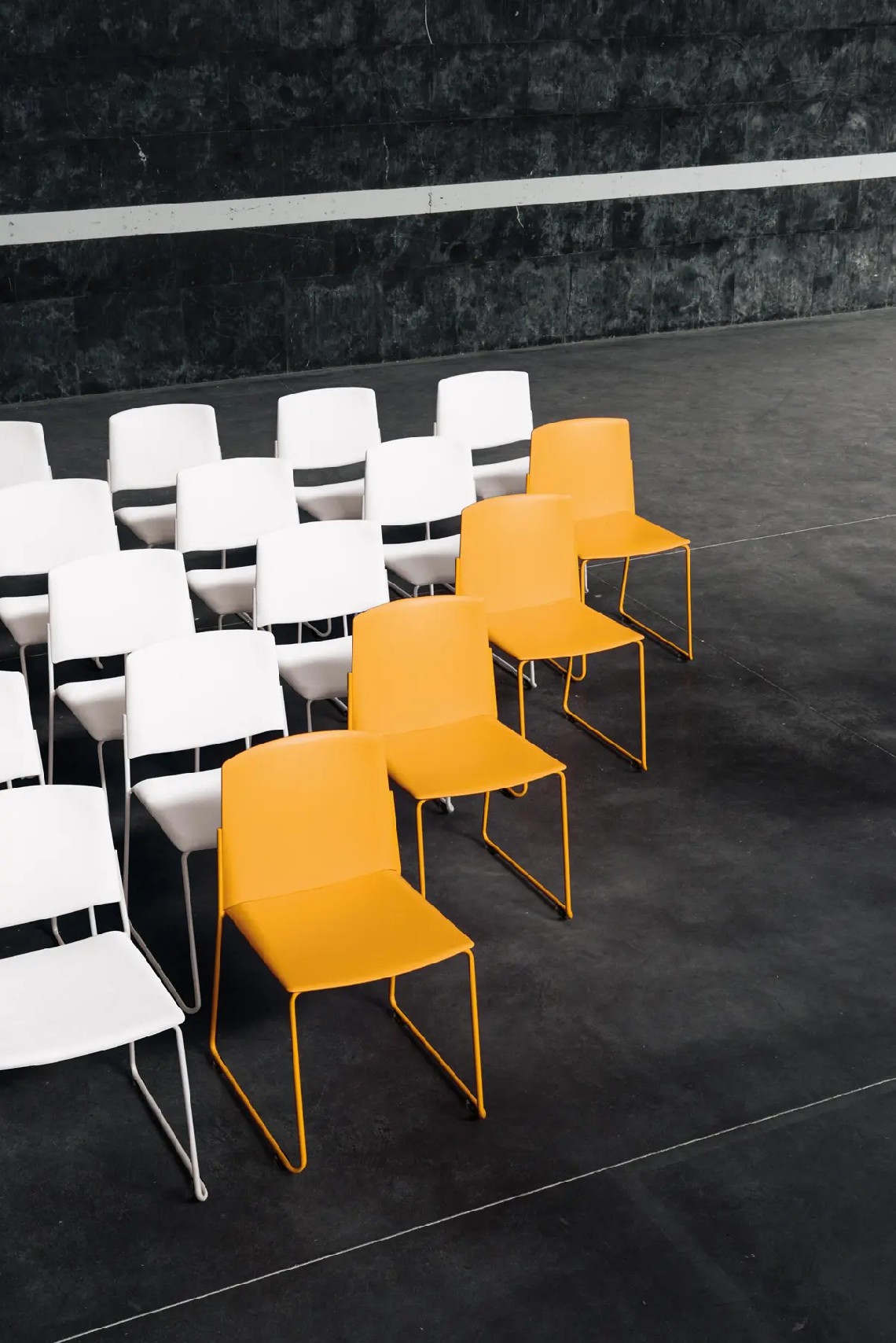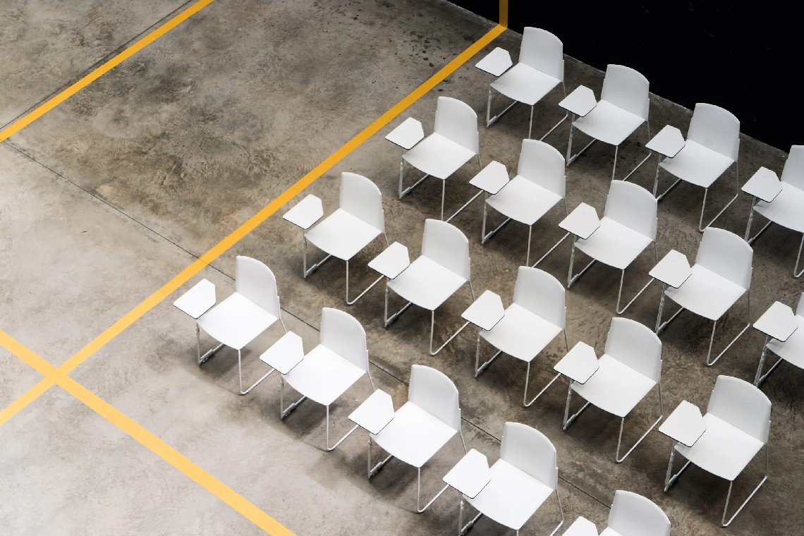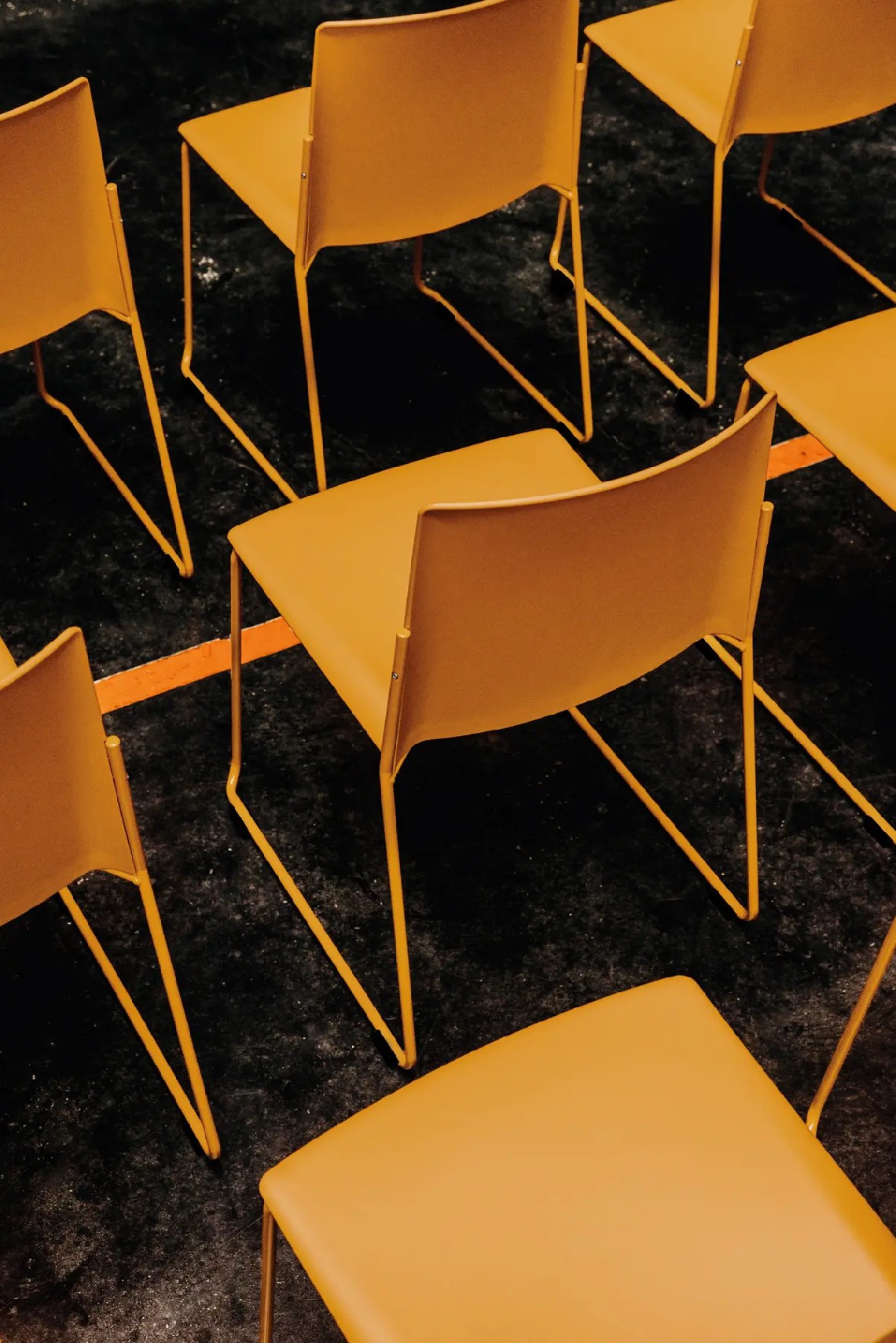 Ema chair with closed backrest is strong, lightweight and high stackable and its closed back makes cozier than the open back. This model also allows to stack up to 45 units, what makes it perfect for all kinds of spaces, in special for contract sector. The sledge steel structure can be chromed or lacquered in any of our colours and the seat and backrest are available in polypropylene or upholstered. Besides, it has an upholstered seat pad available, which is very useful for multipurpose or crowded spaces, improving stacking by causing less friction than the full upholstery version. In this case, the stackability reaches up to 20 units on the trolley and 15 units on the floor.